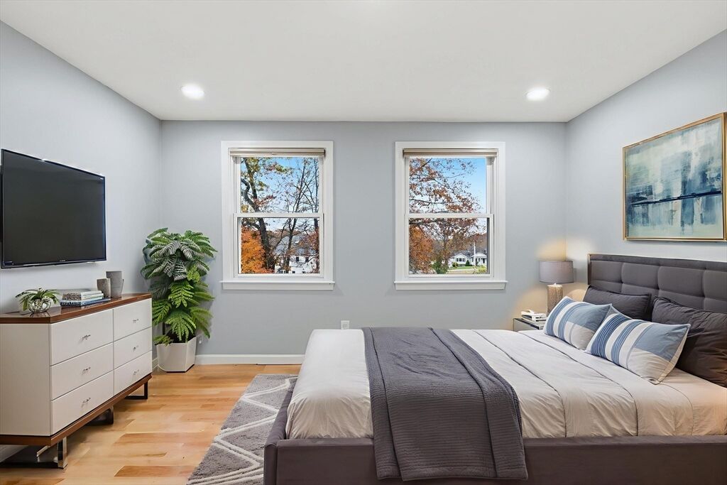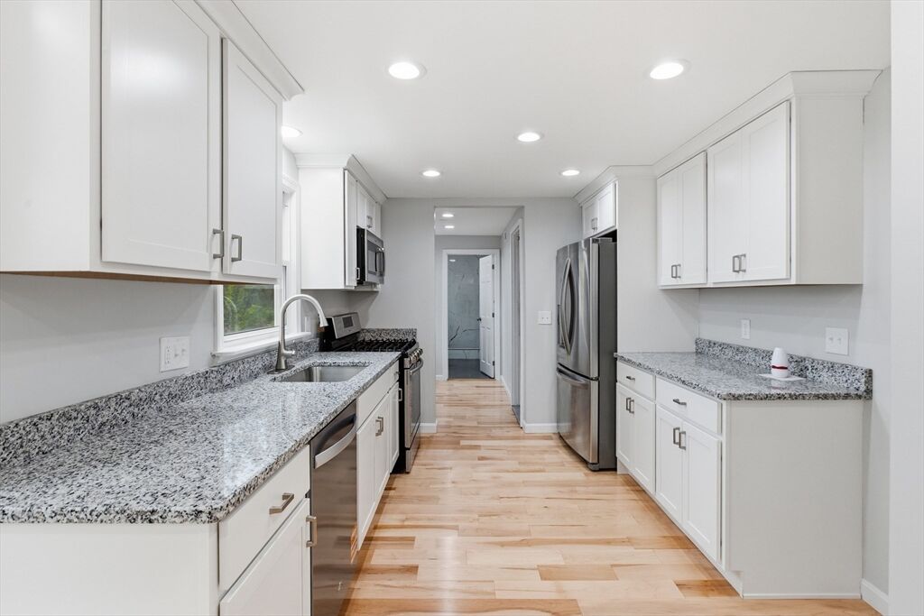 1 Bridle Path Lane is a 4 bedroom, 3 bath Colonial tucked away on a quiet Methuen cul-de-sac. This move in ready home features a bright and functional layout with hardwood floors, recessed lighting, and an abundance of natural light. The main level offers a spacious living room, dining room, family room with fireplace, and a modern kitchen with granite countertops, stainless steel appliances, and a breakfast nook leading to a screened porch and deck overlooking the private backyard. Upstairs are four bedrooms including a primary suite with walk-in closet and private bath. The lower level offers a finished basement with a large recreation room and additional storage space. Additional highlights include central air, solar panels, and a two car attached garage. Set on a landscaped half acre lot with wooded privacy, just minutes to The Loop, Route 93, and local schools.