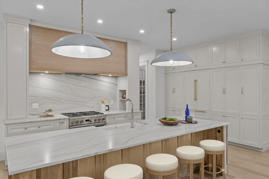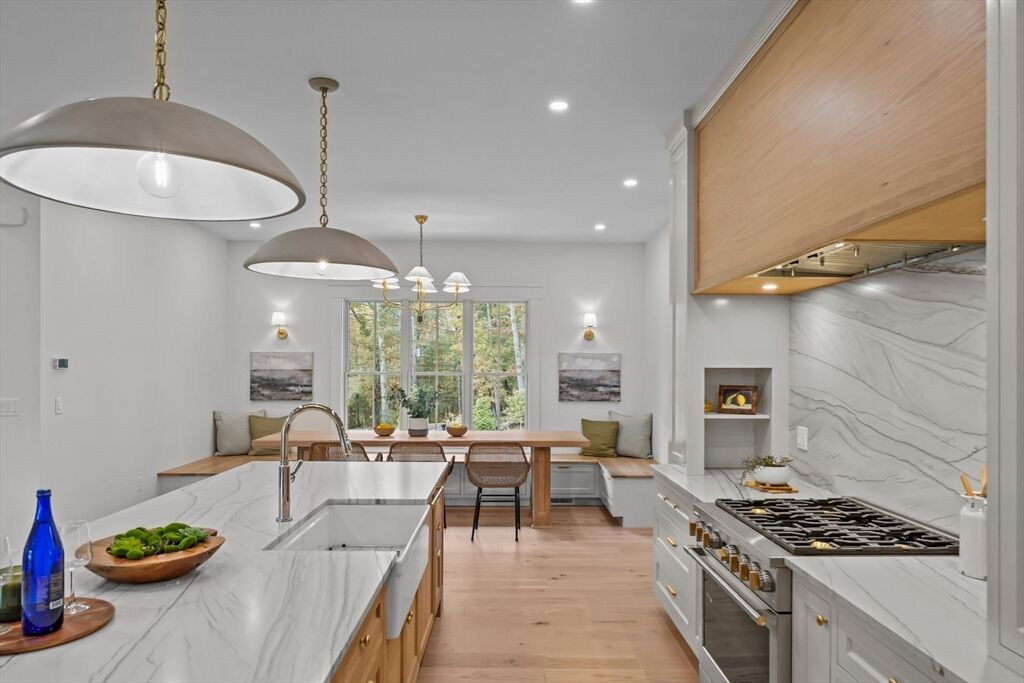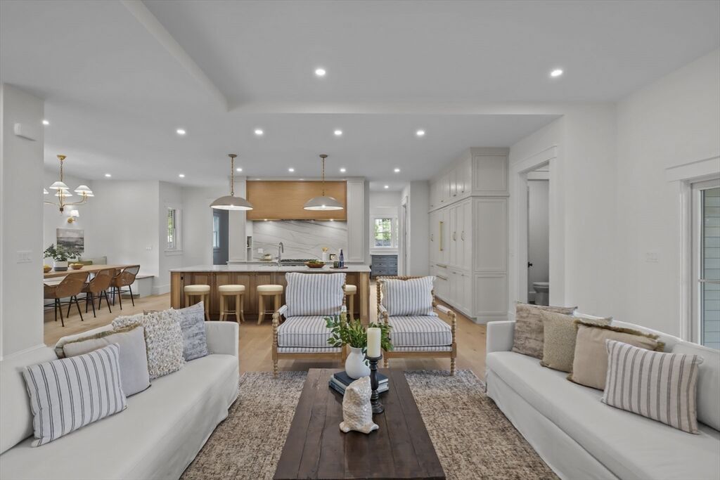 Experience luxury living at 1 Couture Way in Northeast River Estates, a custom-built home that perfectly blends timeless design with modern sophistication. The main level showcases a soaring great room with a fireplace, a gourmet kitchen with a full butler’s pantry, additional open shelving pantry, and a breakfast nook featuring a custom white oak table. A spacious mudroom with abundant storage adds both function and style to everyday living. Sliding doors open to a covered porch with ceiling fans, offering seamless indoor-outdoor living. The first-floor primary suite provides a spa-inspired bath with heated floors and an expansive walk-in closet. Upstairs offers open flex space, three additional bedrooms, and two full baths. The finished lower level features a media room, entertainment area with a full wet bar and wine storage, and walk-out access to a spacious private backyard. A true showcase of craftsmanship and modern comfort in one of Middleton’s newest developments.