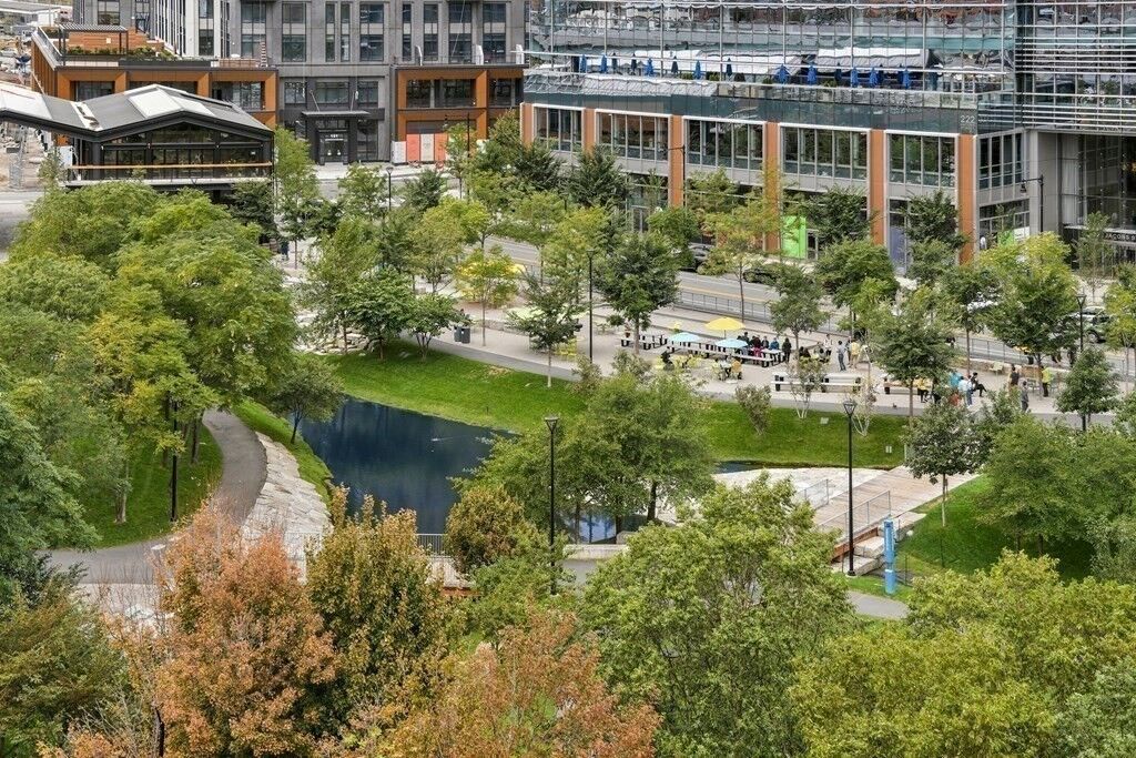 Experience modern top flr loft-style living in this stunning oversized 1 BR+den/office, 1.5 BA overlooking the lush landscaped parks of Cambridge Crossing. Bright, contemporary duplex w/soaring ceilings, flr-to-ceiling windows w/automated shades, sleek bamboo flrs & open layout ideal for entertaining/remote work. Highlights: CA Closet Wall System w/Murphy Bed, Bar w/Lighted Glass Display, ELFA entry closet + pantry & LED HD projector w/100 retractable screen. Chef's kitchen: Aiko cabinetry w/metal backsplash, Bosch appl, crystal pendants, dual H2O filtration. Serene upper BR suite showcases full BA, ELFA closets, new W/D & Home Office w/Integrated desk, cabinetry, lighting. Smart HVAC + fans keep you comfortable year round. Full-size deeded garage prkg w/ Level II EV charging. C/A, Elevator + 24/7 Concierge. Steps to T (Green/Orange/Red), Kendall Sq, MGH, restaurants, Boston Harbor/Navy Yard & Charles River. Pet-friendly, prof managed bldg. surrounded by green spaces + walking paths.
