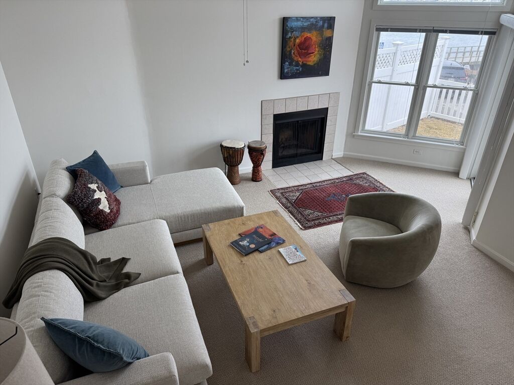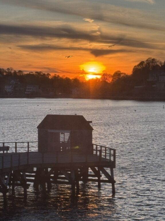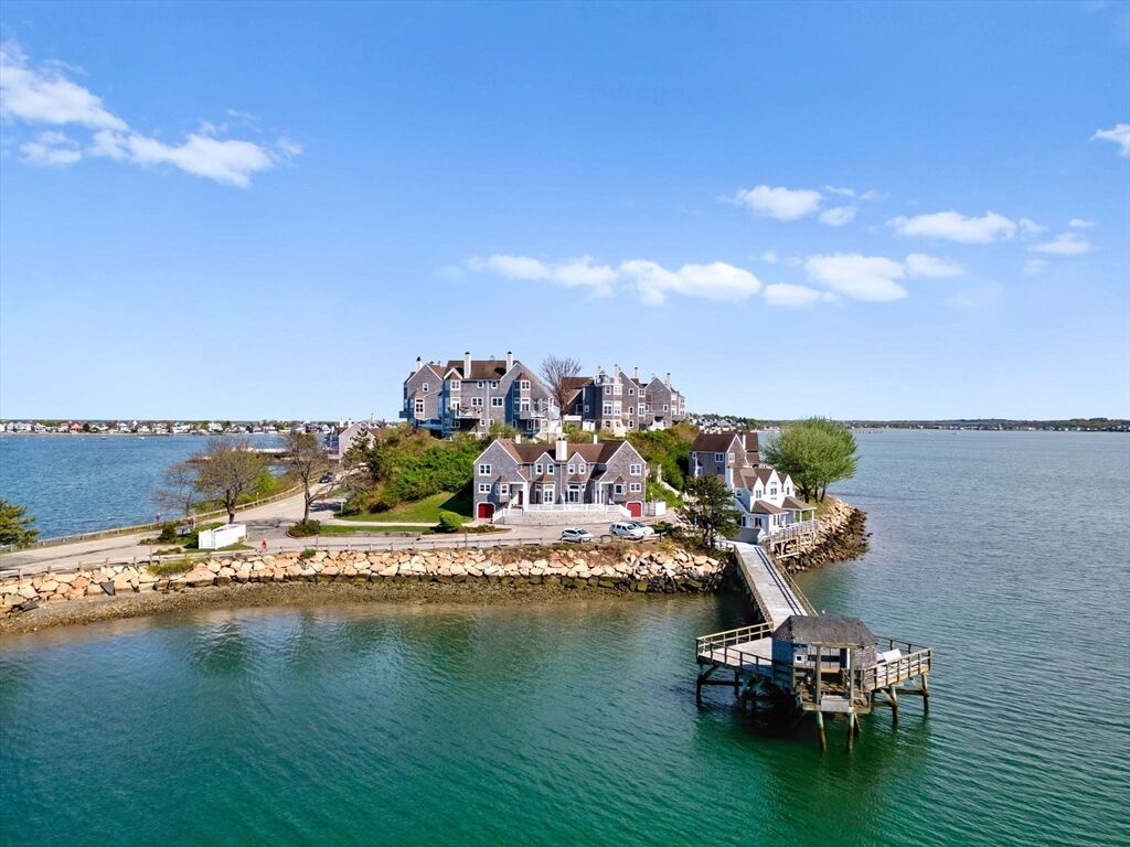Experience amazing sunrises and sunsets in this thoughtfully updated 2 bedroom, 2.5 bath private waterfront unit! The private garden area awaits you as you come up granite steps. Enter into a peaceful LR with FP and high ceilings! A few steps up to the second level includes a dining room/den, half bath and kitchen with fantastic views of Allerton Harbor & Hull Bay. Hardwood stair hallway lead up to the Primary and Guest bedrooms, each with updated bathrooms and California closets. Pull-down ladder access to 300 sq ft of attic storage. Attached garage has a roomy cedar closet for clothing. Enjoy the renovated health club. Outside resort style pool has panoramic views.Visitor parking nearby.Renovated Yacht Club just a few steps away can be rented for parties and functions. Boston and Logan airport are accessible by MBTA ferry less than a mile away. Meticulously maintained and move-in ready for Summer! Sale to include most furniture and kitchen utensils & Sonos speaker system throughout!