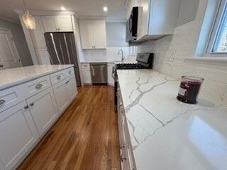 Discover the perfect blend of modern comfort and classic New England charm at 1 Overbrook Road—a beautifully renovated, truly move-in-ready home set on a quiet Middleton corner lot. Every space has been thoughtfully updated so you can simply unpack and enjoy. Step inside to an inviting open-concept living area where sunlight fills the newly refreshed kitchen, dining, and living room. The kitchen shines with quartz countertops, stainless steel appliances, custom cabinetry, and a sleek subway-tile backsplash—ideal for everyday living and effortless entertaining. Refinished hardwood floors lead you to 3 bedrooms & a stunning, fully updated bath, featuring modern tile and LED-lit mirrors for a spa-like feel. The flexible multi room lower-level offers endless possibilities—ideal for guests, in-law setup, or extended living! Located just moments from Middleton’s schools, parks, shops, and commuter routes, this turnkey home offers exceptional value in a sought-after community.
