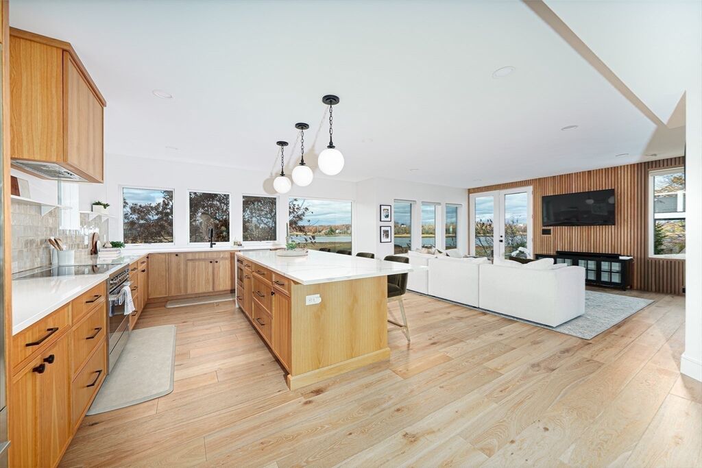 Elegant waterfront property offers a very special opportunity! Enjoy views that take your breath away from all 4 levels of this incredible 2022 home. Enter into the main living area where a wall of windows greets you and welcomes nature right into the home! A large island with waterfall edge and oak cabinetry create a peaceful kitchen space where your family & friends will love to gather. Separate dining area, large pantry and half bath completes the first floor. Follow the glassed-in custom-built staircase up to the second level where you will find 2 bedrooms, a full bath, laundry & office. Continue to the 3rd floor and discover a primary suite that is a dream come true with balcony, walk-in closet, and spa-like bathroom with soaking tub that overlooks the water. Walk-out lower level is easily finished and has a full bath. Step out to your own ocean front patio and relax while you soak up the sun. Or jump into a kayak and make your way into the heart of these peaceful surroundings.