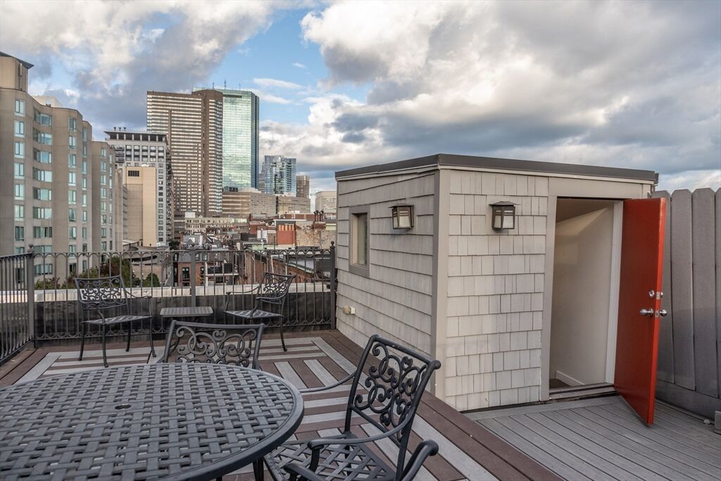 Beautifully renovated and impeccably maintained spacious condo located on the cusp of the South End and Back Bay. This home is perched at the top of a classic brownstone with a sun-filled stunning southwestern exposure and sweeping views of the Christian Science Museum from the elegant bow front windows. The modern kitchen features a Sub-Zero refrigerator, Bosch dishwasher, custom birch cabinetry, granite countertops, built-in wine fridge and a wine and tea bar. The spacious primary suite accommodates a California King bed and includes a walk-in closet, double sinks, and a luxurious two-person jacuzzi tub. Additional features include a wood-burning fireplace, in-unit laundry, central air, and custom built-ins. Enjoy direct access to a common roof deck with city views and a gas grill, as well as locked easily accessible basement storage. Valet garage parking available for rent. Professionally managed, well-established association with very strong reserves and high owner occupancy