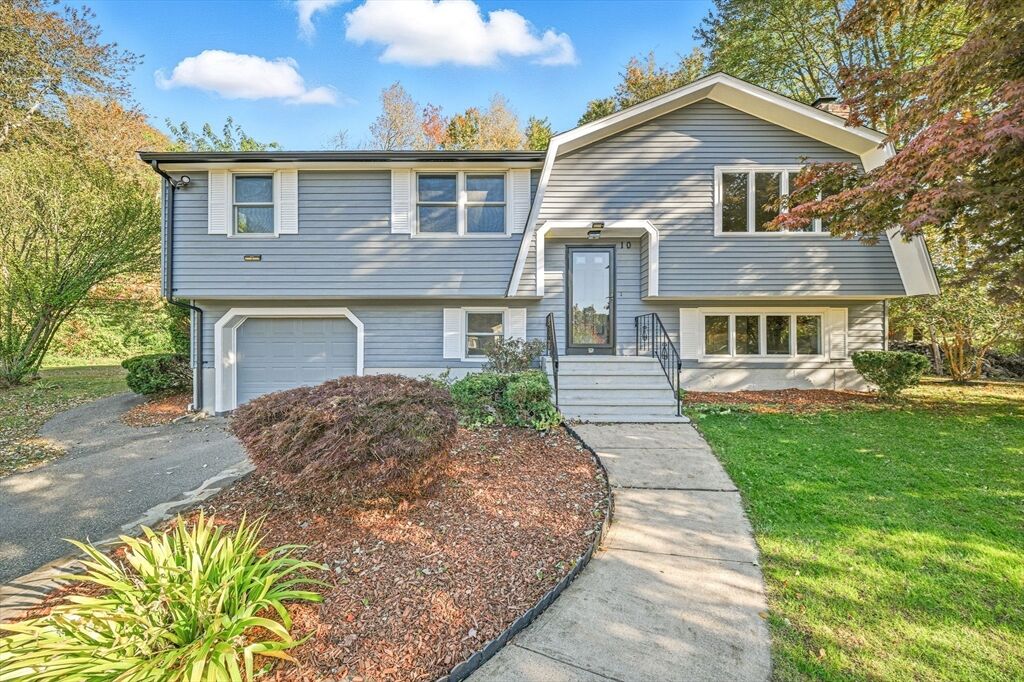 Gorgeous newly-renovated single family sitting on a near one-acre flat lot at a quiet cul-de-sac neighborhood. This raised ranch home offers 3 beds, 1.5 baths (new tiolets/vanities), brand new vinyl flooring, recessed lightings, 2 fireplaces, finished lower level, 1 car garage and 5 off-street parking! It has an open concept layout perfect for entertainment where the kitchen is tastefully designed w/ brand new stainless steel appliances, backsplash, kitchen island (seats 3), dining area, and double doors leading to the 3-season enclosed porch and direct access to the backyard. Upper floor also includes 3 good size bedrooms, 1 full bath w/ tub and new glass shower doors which can also be turned into an en-suite bath from the primary bedroom. Garage has direct access to the lower finished level where there is additional cozy living space plus another office, in addition to another half bath, laundry room and utility area. Conveniently short drive to RT-24 and 10 minutes to I-93/I-495.