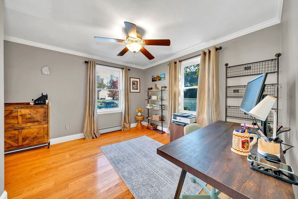 WELCOME TO THIS BEAUTIFULLY MAINTAINED COLONIAL IN THE HEART OF HAVERHILL! This 3-bedroom, 1.5-bath home blends classic charm with modern comfort. The sun-filled first floor features gleaming hardwood floors, crown molding, and an open layout connecting the living and dining rooms. The stylish kitchen offers stone countertops, an island, stainless steel appliances, and pendant lighting. Upstairs, the vaulted-ceiling primary suite includes a walk-in closet and private balcony. The partially finished lower level provides bonus space ideal for a gym or playroom. Enjoy outdoor living with a deck, patio, and storage shed surrounded by landscaped grounds. Conveniently located near Winnekenni Park and major routes for easy commuting. DON’T MISS THIS INCREDIBLE OPPORTUNITY TO OWN THIS MOVE-IN READY HOME!