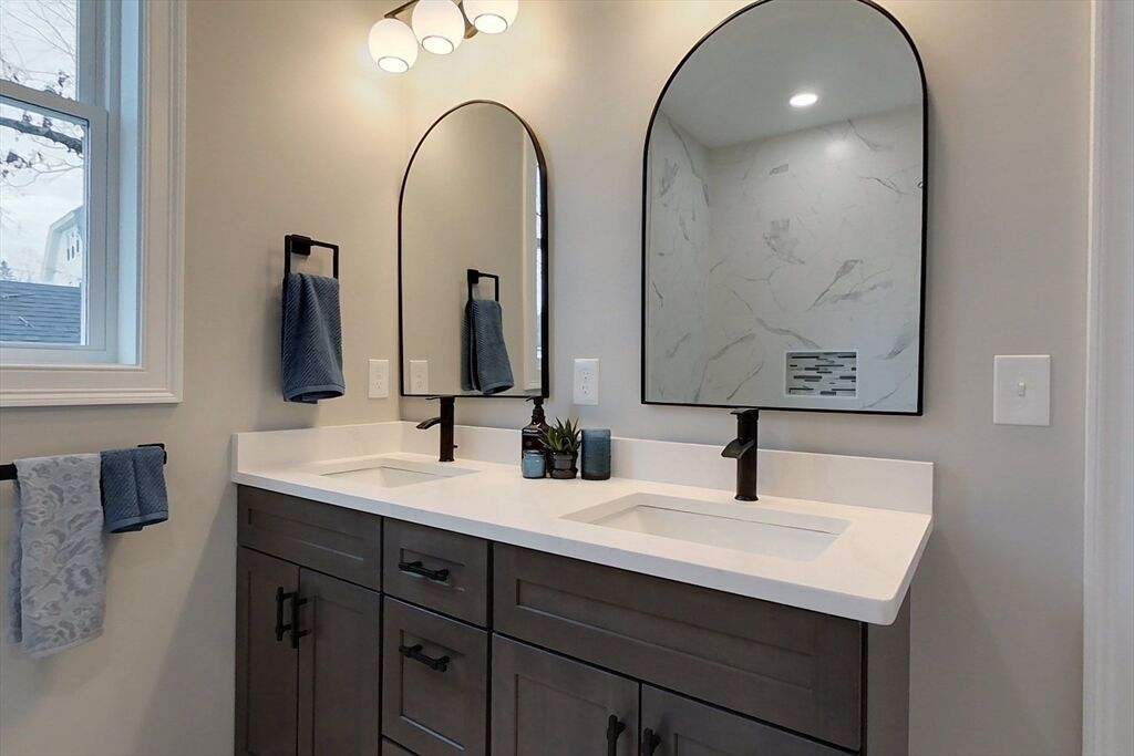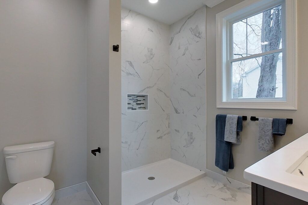 Be the first to own this stunning Modern Farmhouse Colonial, newly completed & ready for immediate move-in! Thoughtfully designed with timeless style & modern comfort, this 4-bedroom, 2.5-bath home showcases 9-ft ceilings, central AC, & hardwood floors throughout the main level. A charming farmer’s porch welcomes you in, leading to a bright layout featuring a first-floor office/bonus room with pocket doors, dedicated laundry room, & a primary suite with custom-tiled walk-in shower & dual vanity. The beautiful kitchen boasts quartz countertops, dual-toned shaker cabinets, & a large island open to the dining & living room with recessed lighting & slider to the back yard spacious patio. Upstairs, a central family room sits between three bedrooms & a full bath. Over 1,100 sq. ft. of unfinished basement space offers endless potential. All set on a beautifully landscaped ¼-acre lot in a prime in-town location close to local shops & eateries! Showings start now – don’t miss out!