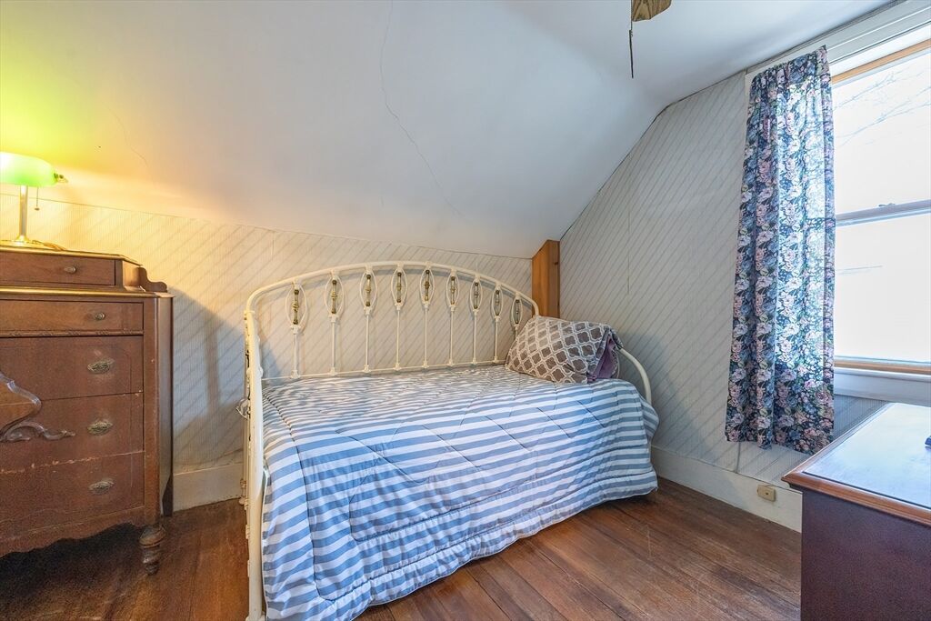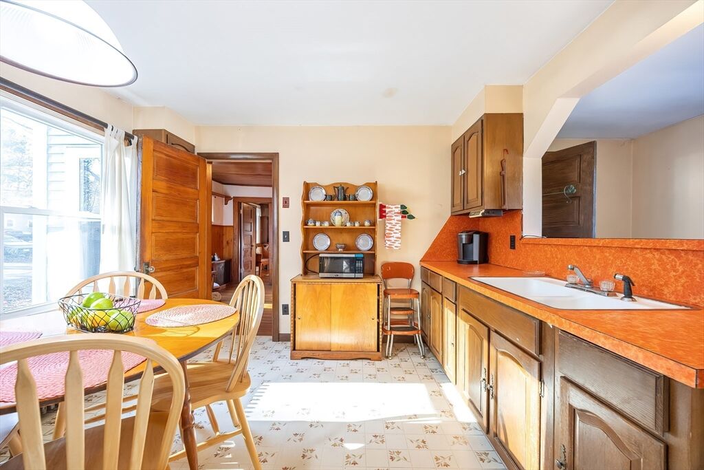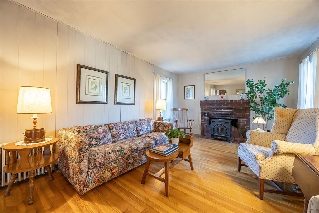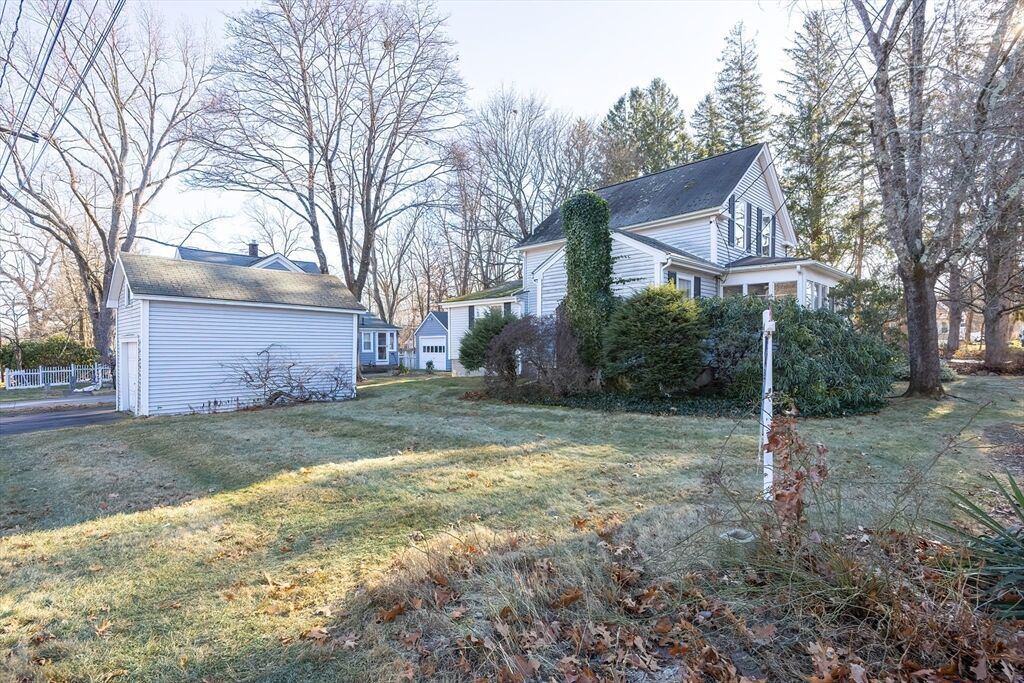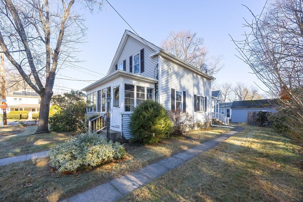 Discover the charm of this beautiful antique Colonial, ideally situated on a corner lot in a peaceful, quaint neighborhood. Enjoy the unparalleled convenience of being moments from the middle school, local shopping, and vibrant Downtown! Step inside the spacious living room, featuring a cozy fireplace, stunning hardwood floors, and an abundance of natural light streaming through multiple windows. The formal dining room (currently serving as a home office) boasts a charming bay window and matching hardwood floor. The practical, eat-in kitchen offers great counter space, a dedicated laundry area, and a convenient full bathroom. Upstairs, you'll find two bedrooms, both with beautiful hardwood flooring, served by a half bath. The inviting enclosed front porch provides the perfect space to sip your morning coffee or relax while taking in the neighborhood view. A one-car detached garage completes this wonderful Home. Estate sale being sold in AS-IS condition. Set up your showing today!