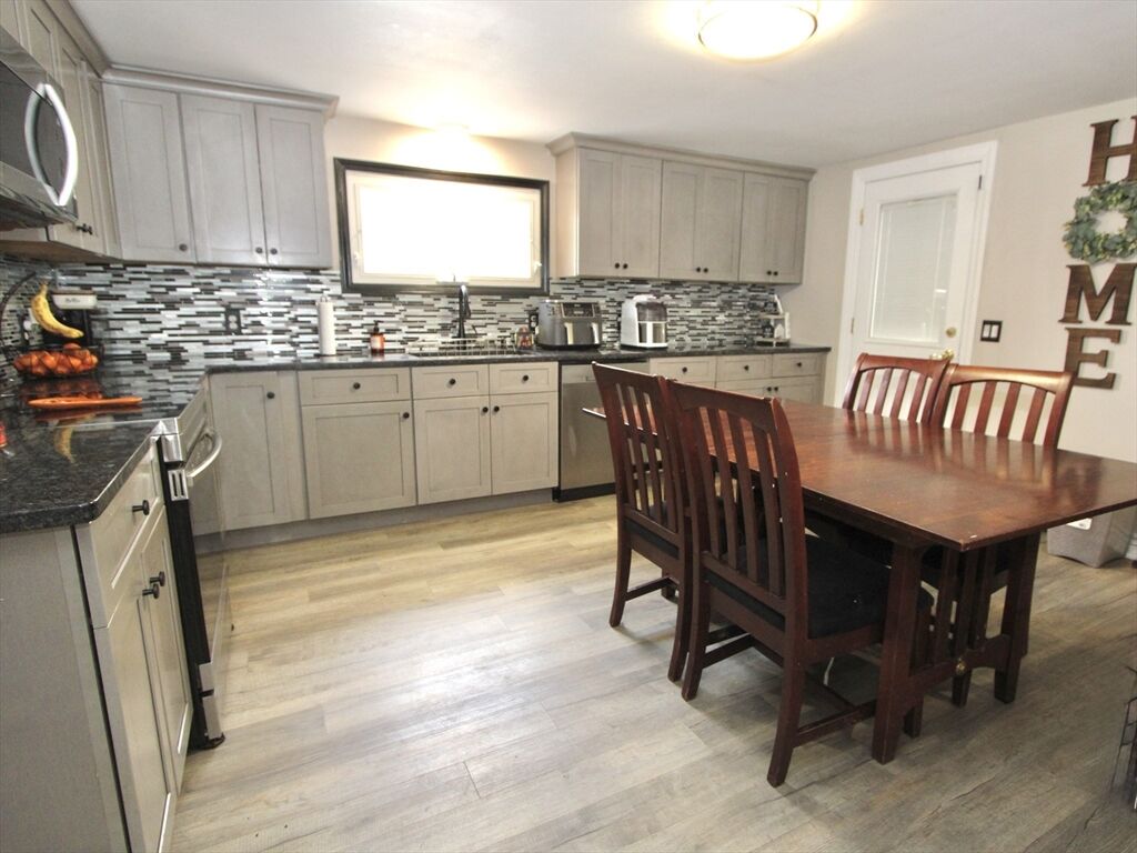 Welcome to 10 Tanyard Rd, Dudley MA — a beautifully updated 3-bedroom ranch in a desirable neighborhood near Nichols College! This move-in ready home features gleaming hardwood floors, central air conditioning, and an oversized kitchen with granite countertops, stainless steel appliances, and a spacious dining area perfect for gatherings. The updated full bath offers modern finishes and vinyl plank flooring. Step outside to enjoy a large fenced backyard with a pool—ideal for summer fun—and a garage for added convenience. Located in a convenient area close to schools, parks, and major routes, this property blends comfort, style, and location. Don’t miss your chance to own this exceptional home!