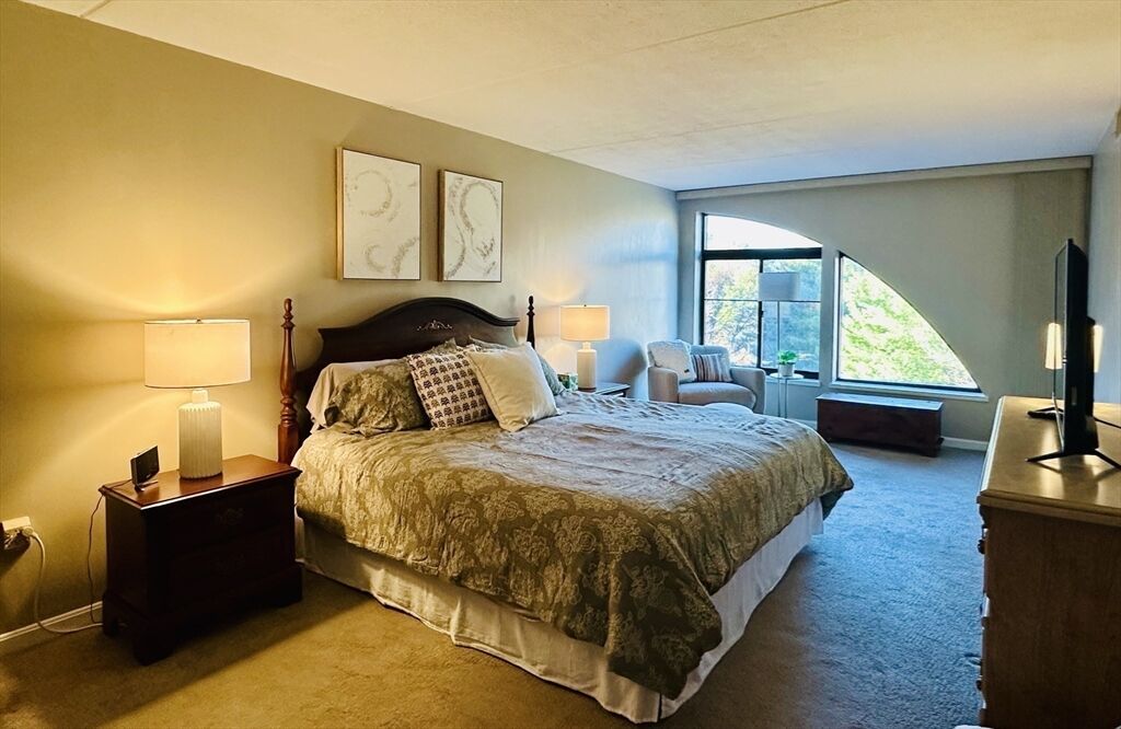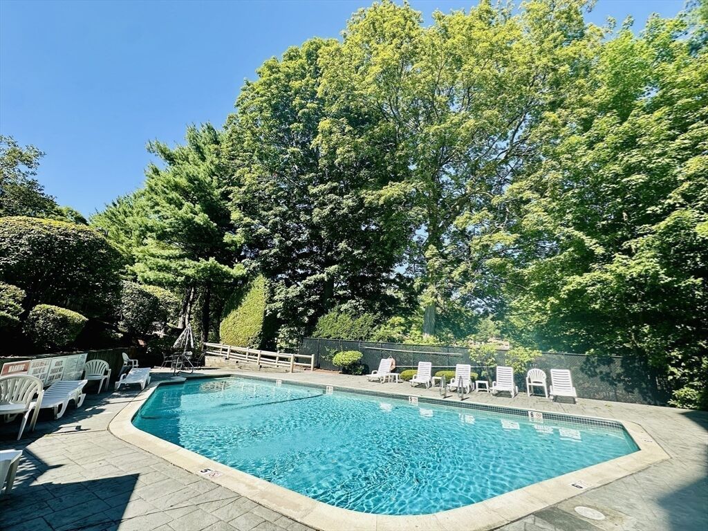 Welcome home to this light-filled, top-floor corner retreat in the highly coveted, pet-friendly Montvale! Offering 1,061 sq ft of smartly designed space, this inviting home boasts expansive windows providing abundant natural light and tranquil views. The spacious primary suite includes a generous walk-in closet and sitting area overlooking the beautifully maintained inground pool. The 2nd bedroom is equally bright and versatile, and 2 full baths provide exceptional convenience and privacy. Additional amenities include 2 DEEDED GARAGE spaces, in-unit laundry with full size, side-by-side washer & dryer, and private storage plus trash/recycling room on same floor. Condo fee covers hot water and large part of heat & AC. This commuter’s dream is just 0.3 miles from Rt. 93 while maintaining the peaceful feel of a residential setting. Refrigerator, microwave, washer & dryer remain as gifts to buyer. Make this move-in ready home combining comfort, easy living, location, and style yours today!