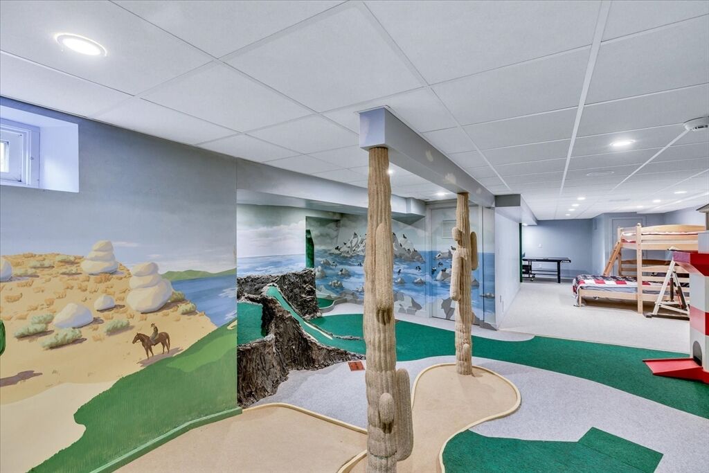 This custom-built, 3-bedroom estate offers unparalleled luxury and resort-style living. The open-concept design features vaulted ceilings and hardwood floors. The main level primary suite provides a private sanctuary, with two additional ensuite bedrooms. Above the 3-car garage, discover a private, fully appointed guest suite. The exterior boasts a heated in-ground pool, hot tub, and a meticulously landscaped .7-acre lot with stone walls and mature plantings for privacy. A separate pool house includes a kitchenette, full bath, laundry, and AC. The lower level offers a professional 9-hole putt-putt course and a TV/ping pong playroom. Schedule a private tour today.
