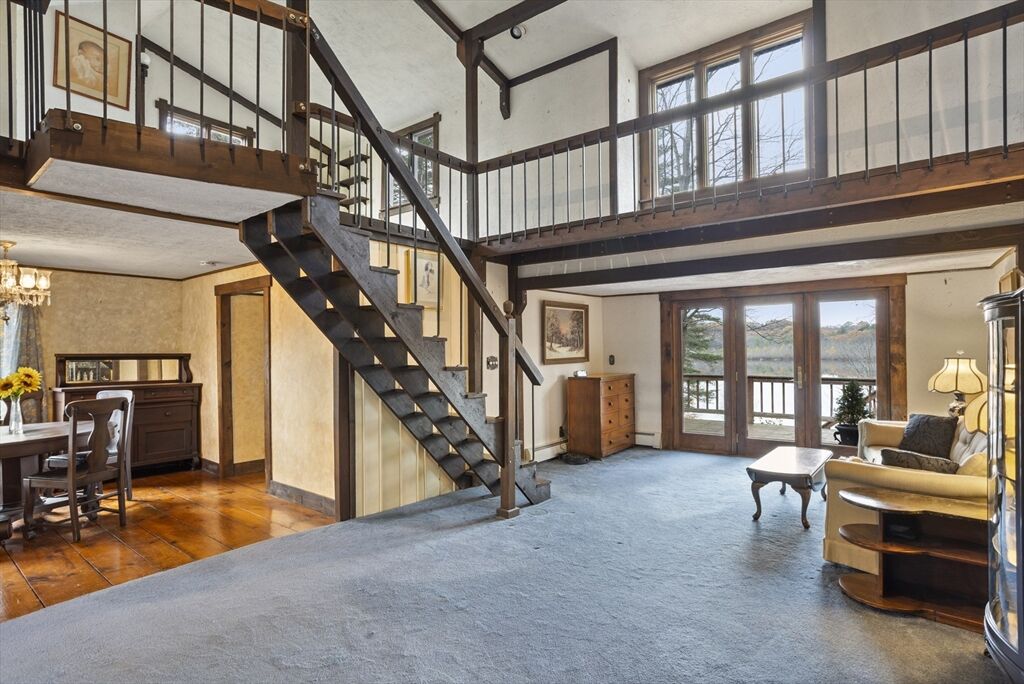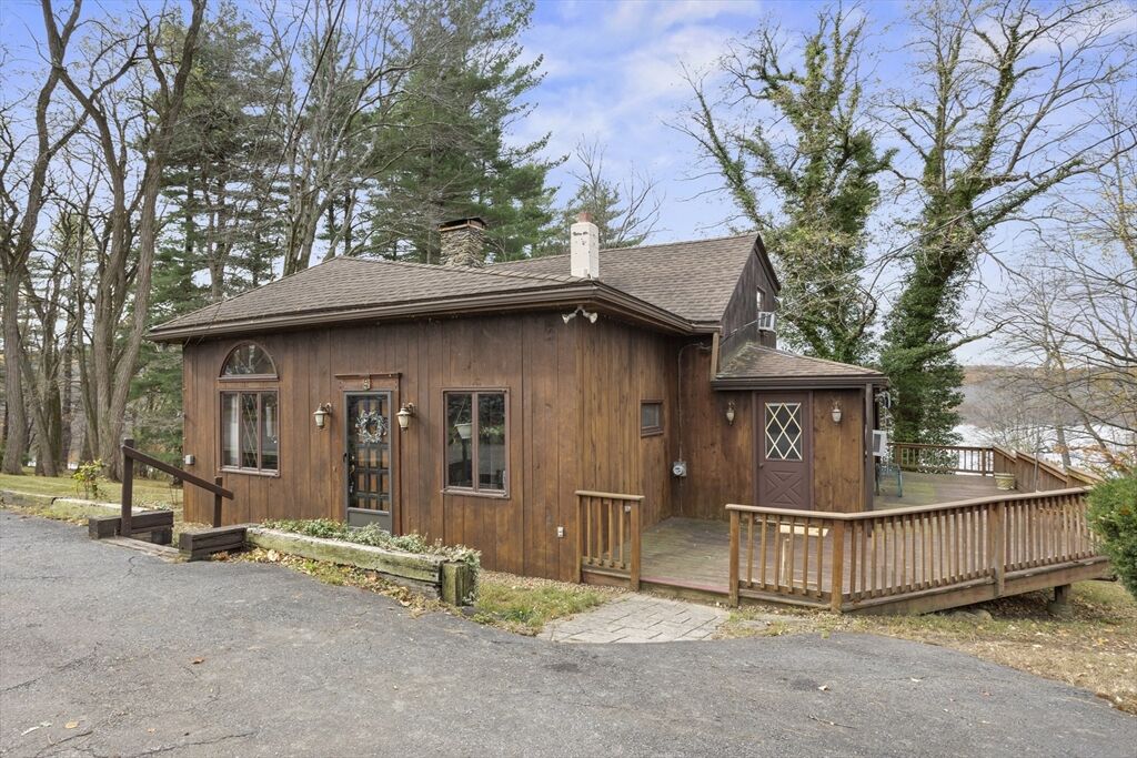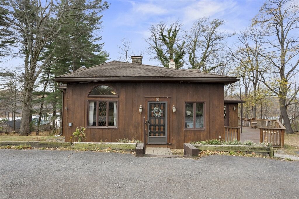 Waterfront retreat on scenic Massapoag Pond! Enjoy year-round beauty—swim, boat, or skate right from your own shoreline. Set on 1.1 acres, this unique property offers sweeping water views from nearly every room. The home lives like a two-story chalet, featuring a soaring central atrium with two open lofts, first-floor bedrooms, a screened porch, and an updated kitchen. A large shed provides space for tools and lake toys. This special property is being sold as is with a failed septic system—traditional financing will not apply. Bring your vision and make this waterfront getaway your own. Vacation at home!