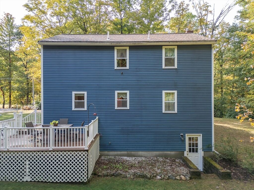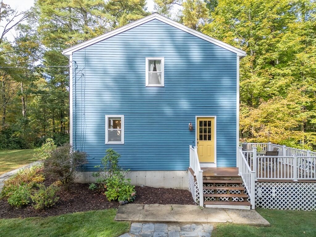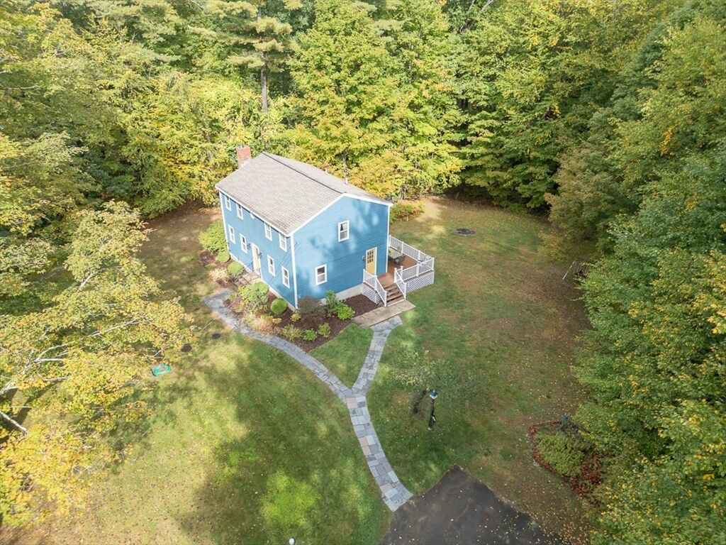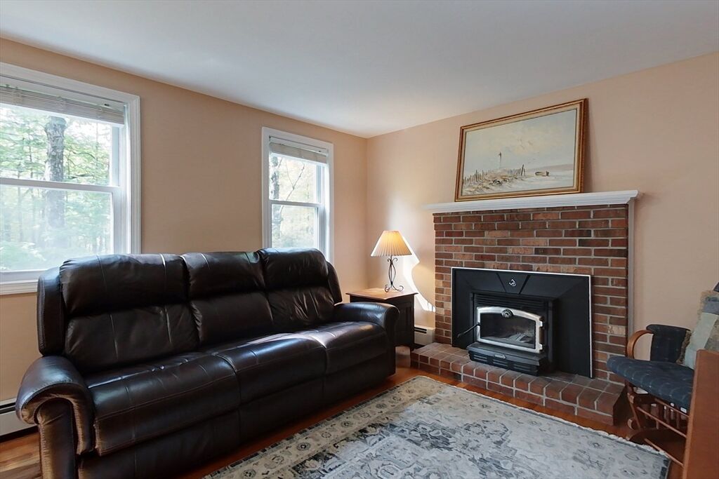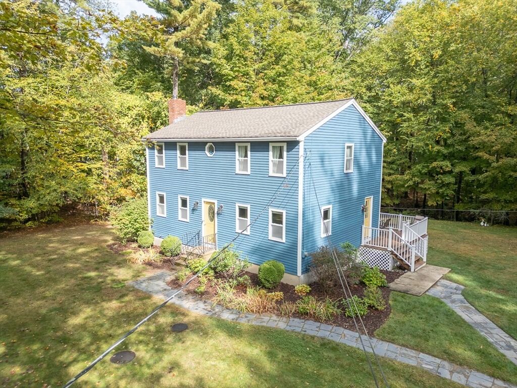 Welcome home to this 4-bedroom gem situated on a wooded lot where the treeline wraps the entire property, creating natural privacy. Gather around the backyard fire pit, plant your dream garden, or simply enjoy the seasons from the renovated deck. Inside, hardwood floors flow through a sun-filled dining room and cozy living room with a wood-burning fireplace insert that can heat the whole home. The kitchen features warm wood cabinetry, some stainless appliances added within the last 5 years, and deck access. A first-floor bedroom adds flexibility, while upstairs offers 3 bedrooms—including a spacious one with dual walk-in closets—and a full bath. With 650+ sq ft of storage in the basement, a newer roof, chimney work, gutter covers, and shed this home blends charm with function. Just minutes to Route 119, the MA/NH line, and local shops/dining.