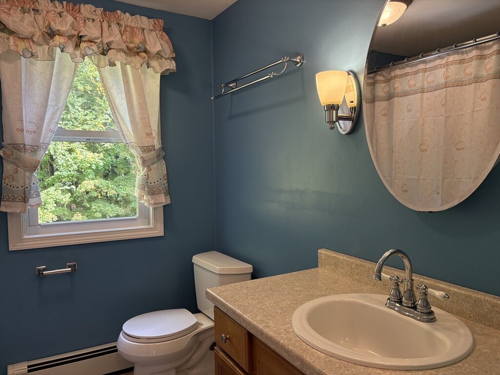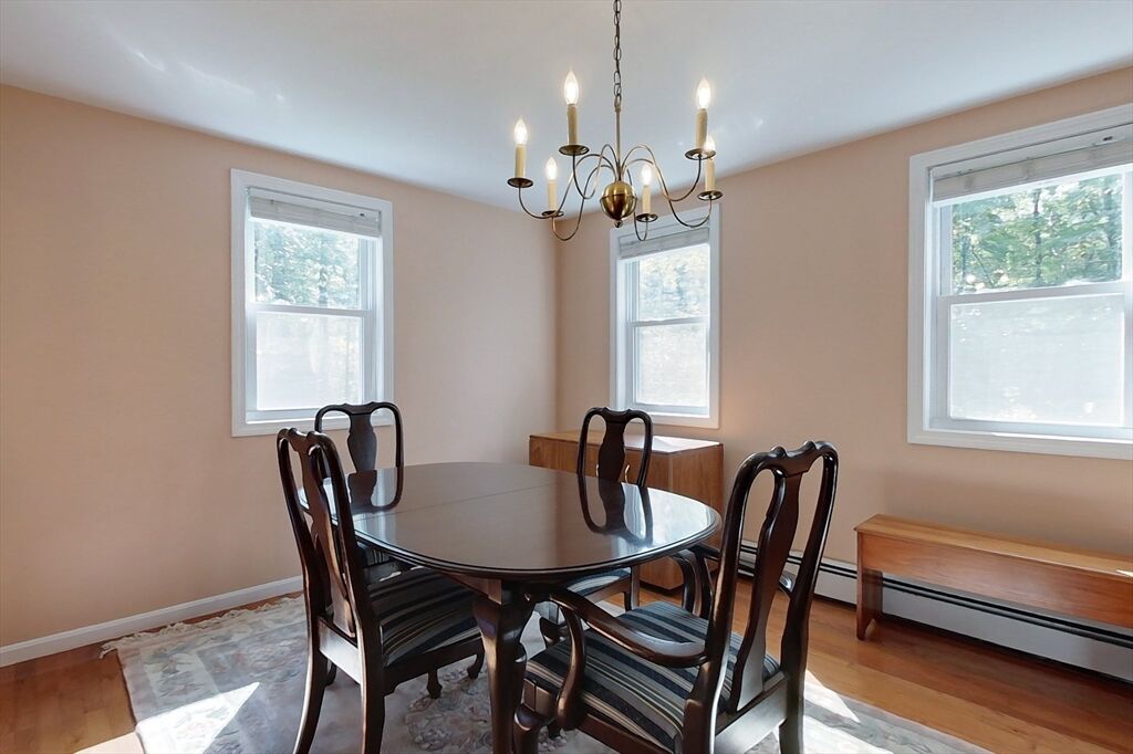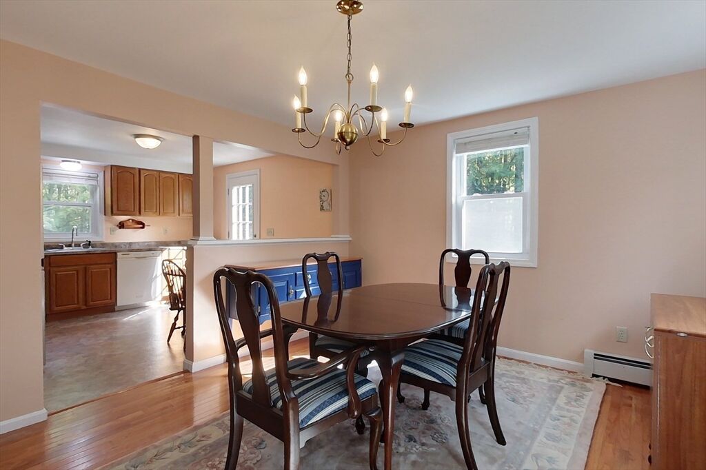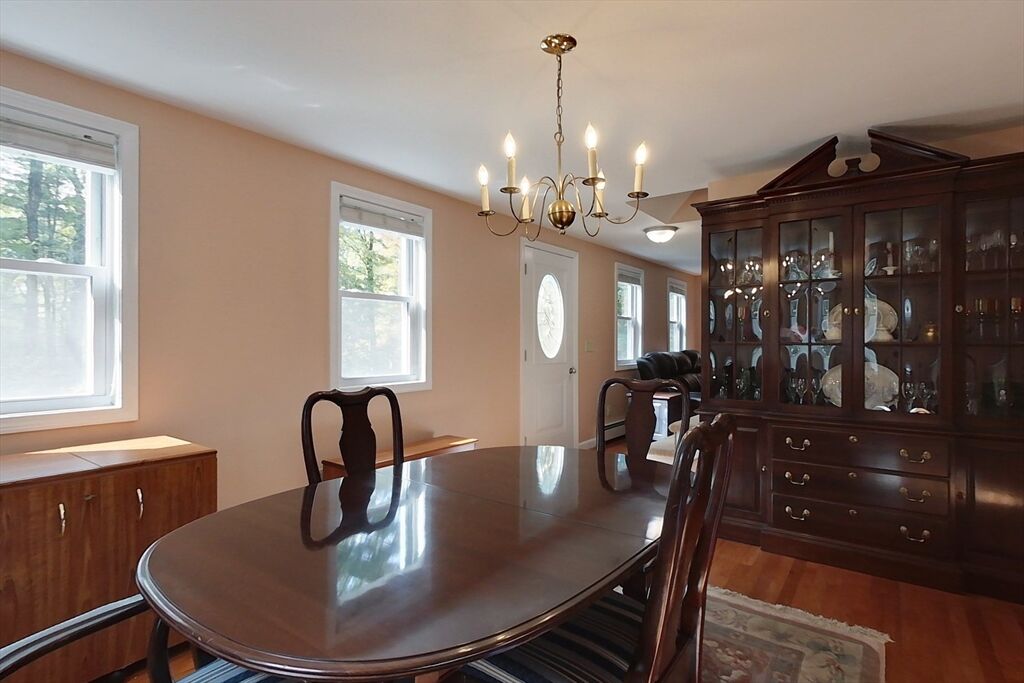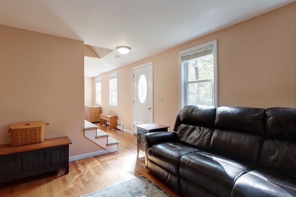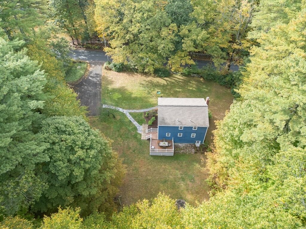 Welcome home to this 4-bedroom gem situated on a wooded lot where the treeline wraps the entire property, creating natural privacy. Gather around the backyard fire pit, plant your dream garden, or simply enjoy the seasons from the renovated deck. Inside, hardwood floors flow through a sun-filled dining room and cozy living room with a wood-burning fireplace insert that can heat the whole home. The kitchen features warm wood cabinetry, some stainless appliances added within the last 5 years, and deck access. A first-floor bedroom adds flexibility, while upstairs offers 3 bedrooms—including a spacious one with dual walk-in closets—and a full bath. With 650+ sq ft of storage in the basement, a newer roof, chimney work, gutter covers, and shed this home blends charm with function. Just minutes to Route 119, the MA/NH line, and local shops/dining.
