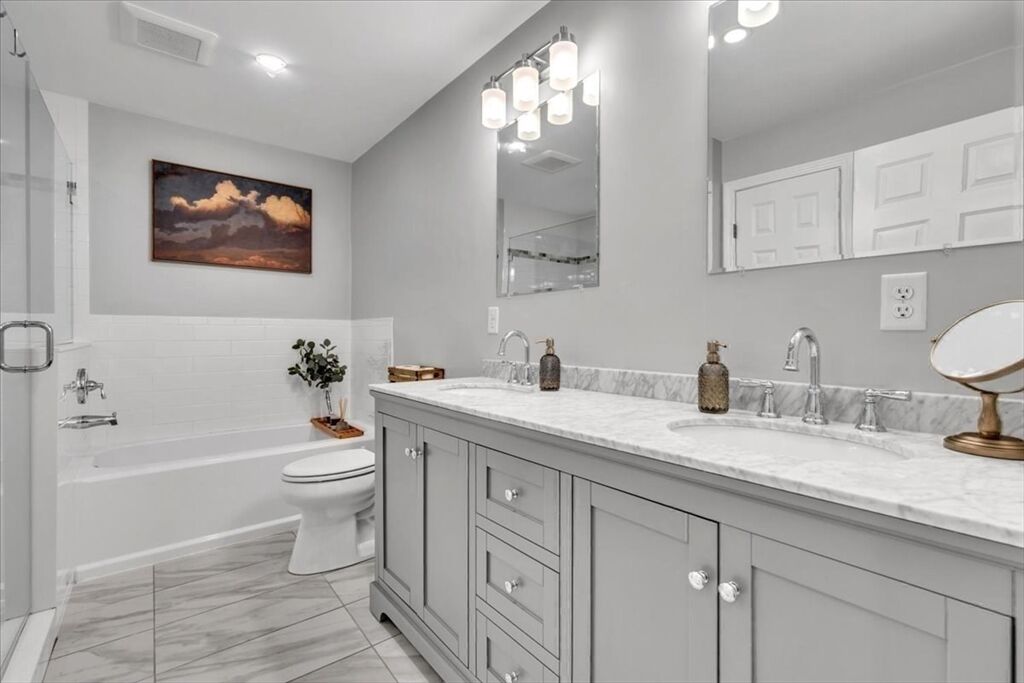 Welcome to this gorgeous, renovated 4 bedroom, 2 bath ranch with 1 car garage. This spacious home offers an open-concept layout perfect for entertaining, a beautiful kitchen with soft close cabinets, granite countertops, and stainless steel appliances. Beautiful hardwood floors throughout and double-sided charming wood-burning fireplace ideal for cozy relaxation that opens to a formal dining room or office. This home also offers a breathtaking sunroom with two skylight bringing in natural lighting, large glass sliding doors that provide a panoramic view, and a gas fireplace leading to a covered deck overlooking the beautiful private backyard—a serene space to unwind and enjoy nature. Major updates include a new roof, high-efficiency HVAC, windows, electrical, plumbing and a newer septic system. The finished lower level provides additional flexible space for a playroom, gym, or office. Conveniently located near all amenities. Don’t miss this exceptional home!