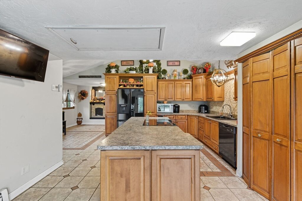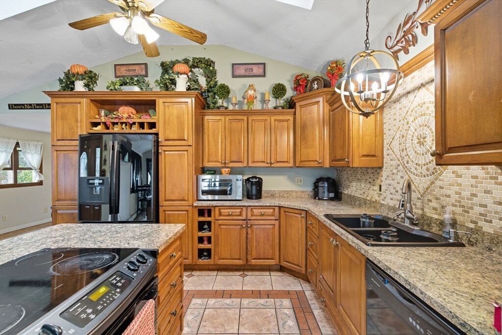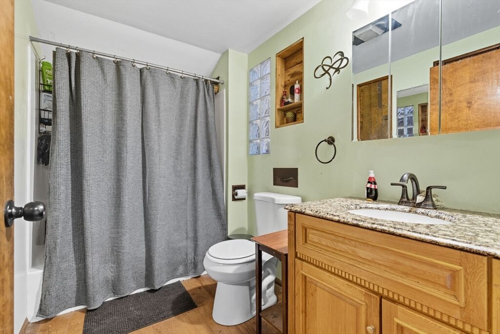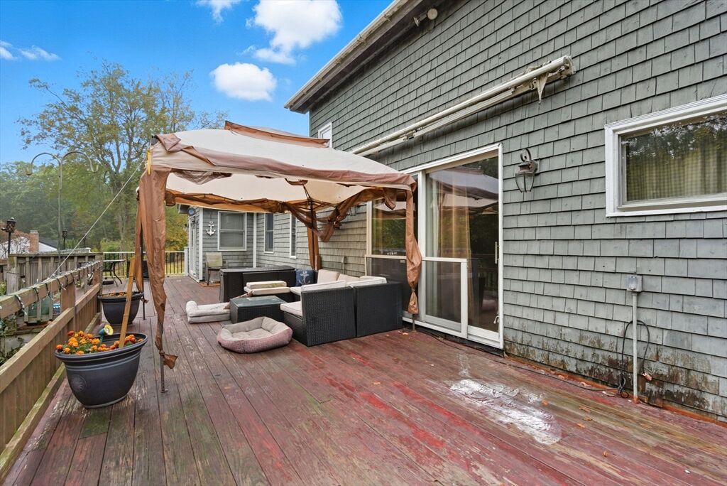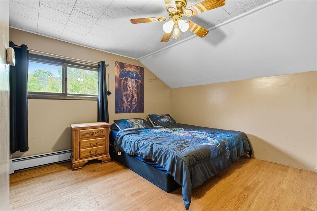 Welcome to 106 Gardner Rd in Hubbardston. This 3-bedroom, 1.5-bath Colonial offers over 1,700 sq. ft. of living space on nearly 2 acres of land. The main level features an open kitchen with cathedral ceiling, skylights, island, and pantry, flowing into a dining room with bay window and stone tile flooring. A spacious living room with pellet stove and slider opens to the deck and backyard. Upstairs, the primary bedroom includes a walk-in closet and ceiling fan, along with two additional bedrooms and a full bath with solid-surface vanity. Exterior highlights include a front porch, wood deck, storage shed, and garden area.