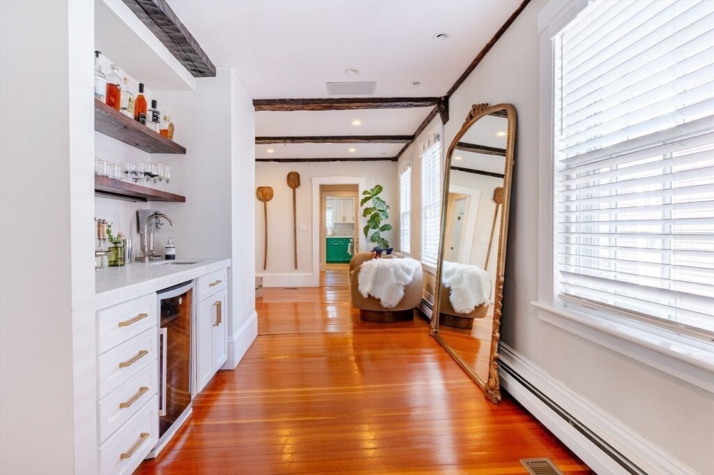Meticulously renovated historic home that perfectly marries its rich past with contemporary elegance. Nestled in the heart of Old Town steps to Fort Sewall, Gas House Beach, Crocker Park, shops and restaurants. This 4–5 bedroom, 3.5 updated bath home has every space thoughtfully designed. The heart of the home is the updated eat-in kitchen with floating banquette seating, a custom quartz & iron table, appliances include Wolf range, Sub-Zero refrigerator, and Fisher & Paykel DW. French doors lead to a fenced yard with irrigation, and a custom cedar pergola (built in 2023)—an inviting retreat for outdoor entertaining. Attention to detail is evident throughout: the library, pantry, bar, and sitting area on the first floor to the original beams and wide King pine floors that add timeless character. The primary is exceptional with 2 closets, designer bath with radiant heat, double vanity, and oversized walk-in shower.High ceilings, new windows, and central air...move in and start living!