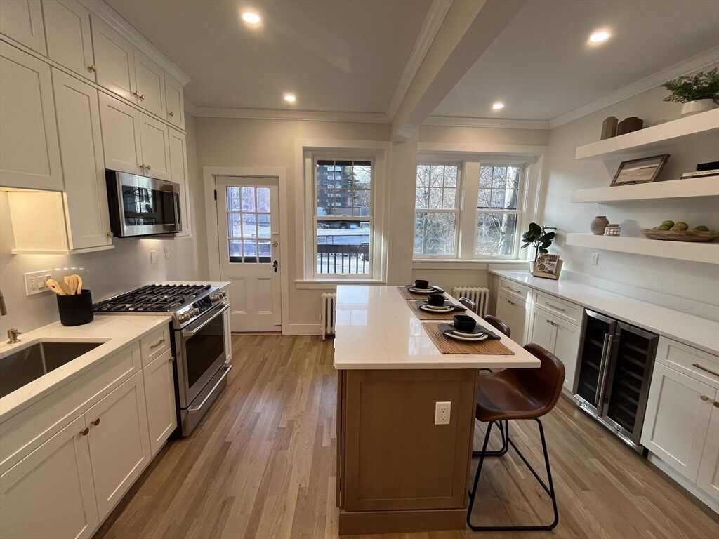 Discover this newly renovated, rarely available 2-bedroom condo in the heart of Coolidge Corner. With deeded parking, high ceilings, and abundant western light, the home feels bright and welcoming throughout. The brand-new kitchen features GE Café appliances, gas range/dishwasher, beverage fridge, center island, and opens to a spacious balcony ideal for relaxing or entertaining. Both bedrooms offer generous space and double closets, while in-unit laundry and private storage add everyday convenience. The pet-friendly, high owner-occupied building provides a warm community feel, and the condo fee includes heat, hot water, and professional management. All just moments from the Longwood Medical Area, Lawrence School, the C & D lines, and Brookline Village. Enjoy a perfect blend of comfort, luxury, and convenience in one of Brookline’s most sought-after neighborhoods, with shops, cafés, and parks!