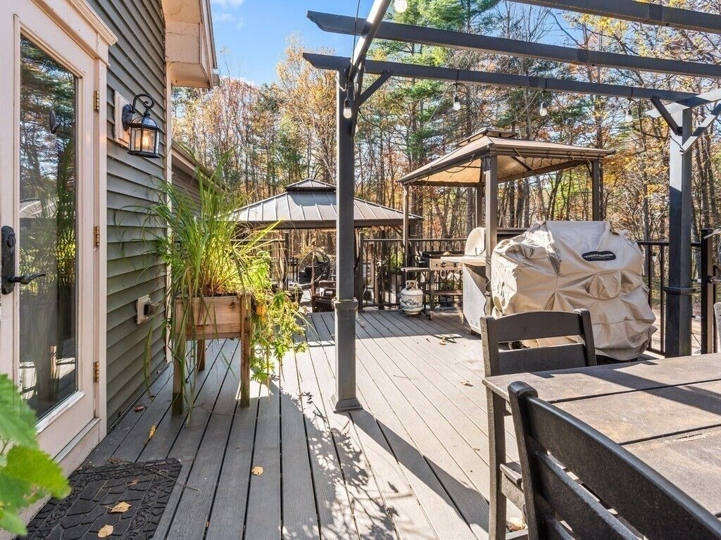 Welcome to this beautifully designed 4-bedroom, 3 full, 2 half-bath home set on just over 2 acres. This unique property features a high-end kitchen with dual ovens, a Capital - 6 burner propane stove with a brushed bronze pot water fill feature for your convenience. The open floor plan provides a bright living space. Quality finishes continue throughout from the radiant-heated ash flooring in the living room to the mahogany porch and the oversized Trex deck. The versatile loft includes space for a bedroom or office opening into a spacious family room with two storage closets. The partially finished lower level offers bonus living space currently used as a bedroom with a kitchenette and full bath. Conveniences are scattered throughout including hookup for a hot tub and a fenced in front yard. Enjoy a perfect blend of modern comfort, flexibility, and privacy in a serene setting.
