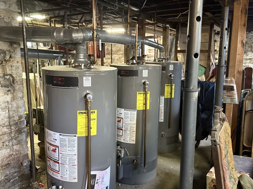 First showings at Open Houses: Sat 11/1 from 11 - 1; Sun 11/2 from 11-1. Solid 3-family in great location with easy access to shopping, highways, entertainment, schools. This is either an excellent investment or a great owner-occupied situation as two of the apartments accommodate three bedrooms (the second floor unit would need the wall put up between the former bedroom and the living room to recreate the third bedroom in that unit). All three kitchens are eat-in and the room Laundry connection in the basement. Recent electrical upgrade: four new meters and circuit breaker panels. Roof on main house approximately 2011. Exterior has a beautiful farmer's porch in the front, vinyl siding, excellent off street parking and a two-car garage with additional storage/workspace.