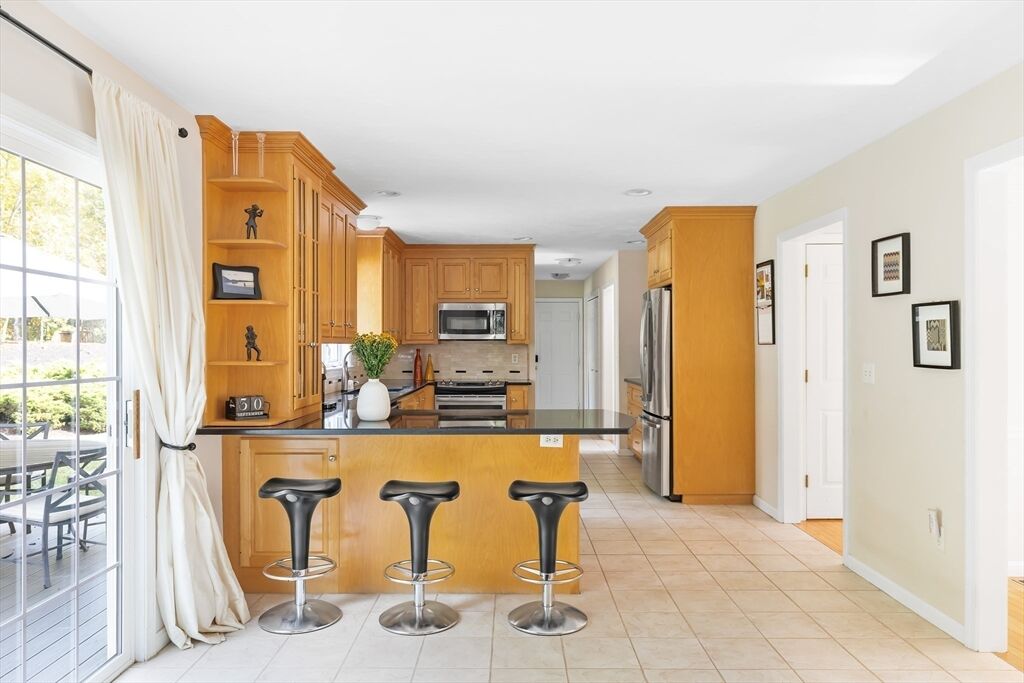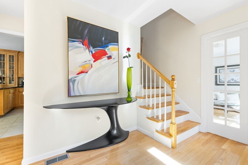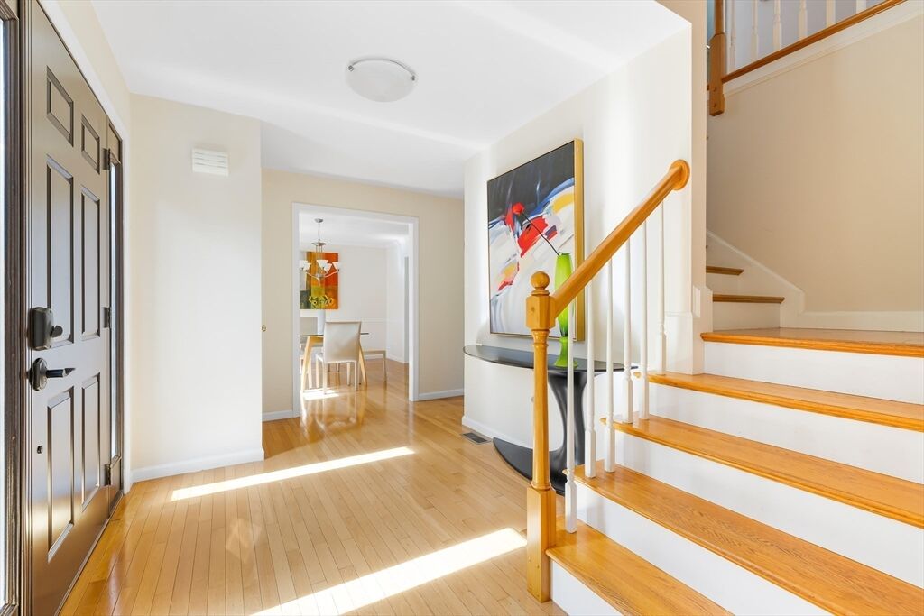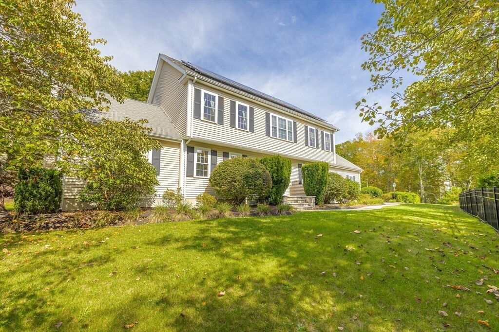 Don't miss this stunning Colonial combining classic charm with modern finishes. The curb appeal is enhanced w/ a new front door and granite steps.This updated home features 4 bedrooms, 2.5 baths & a 2-car garage. Cathedral-ceiling living room w/ hardwood floors is filled with natural light. Chef’s kitchen includes custom maple cabinetry, granite counters, Kohler touchless faucet & stainless-steel appliances.The formal & informal dining spaces open to a large composite deck, perfect for entertaining. A laundry room & half bath round out the first floor. Upstairs the primary suite offers 2 walk-in closets & spa-like bath with Jacuzzi, quartz vanity, new large shower Niche & Kohler fixtures. Additional bedrooms feature new carpet & an updated stylish 2nd full bath. The finished lower level extends the living space with a home theater, gym/studio, workshop & storage. Energy-efficient 8.40 kW solar panels, whole-house water filter & smart lighting make this move-in ready home truly special.