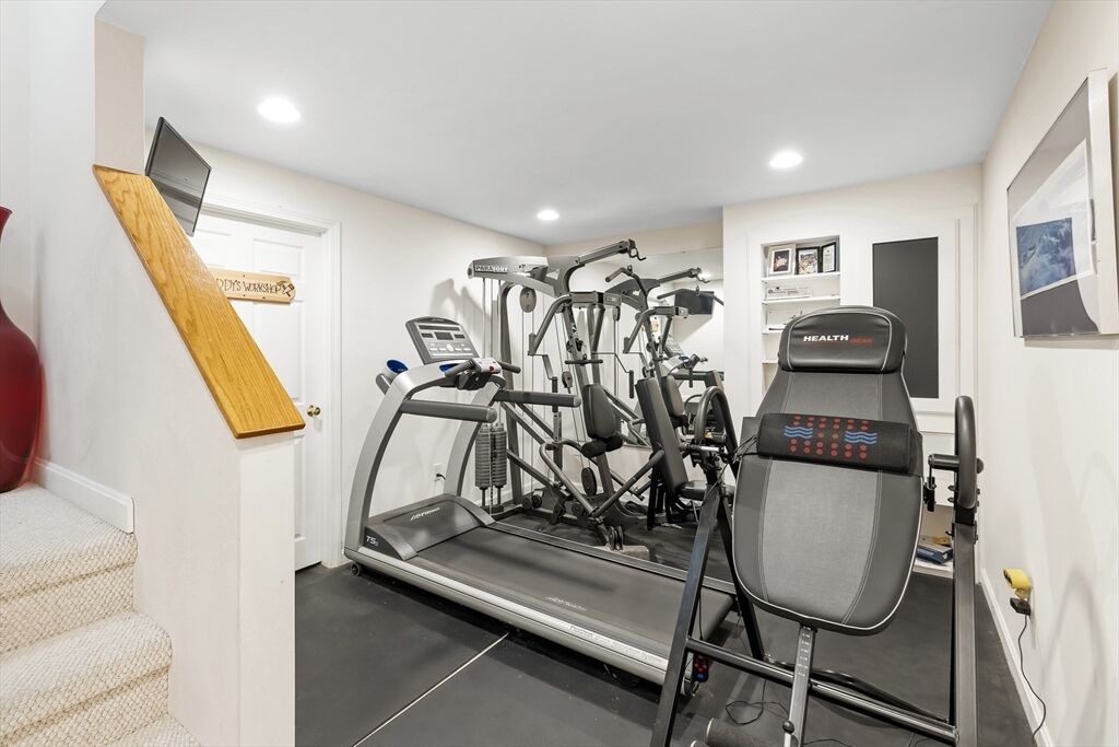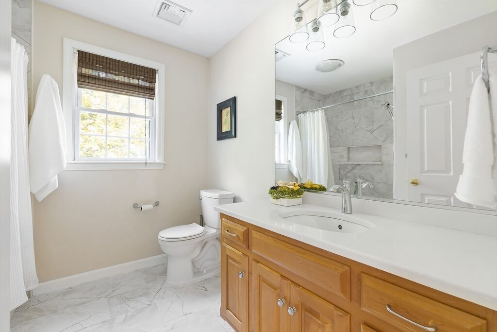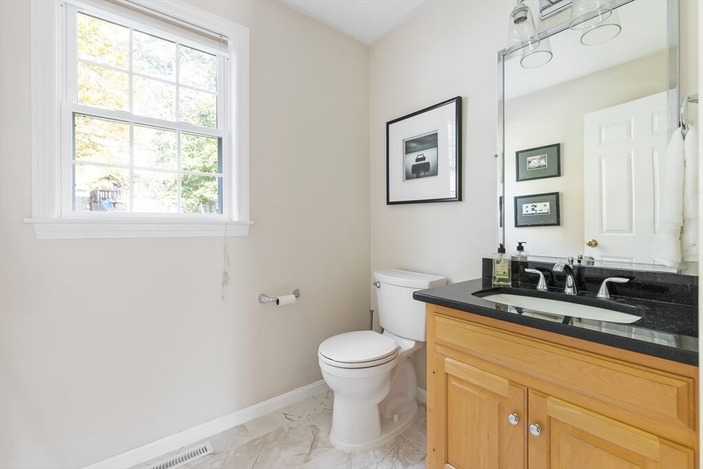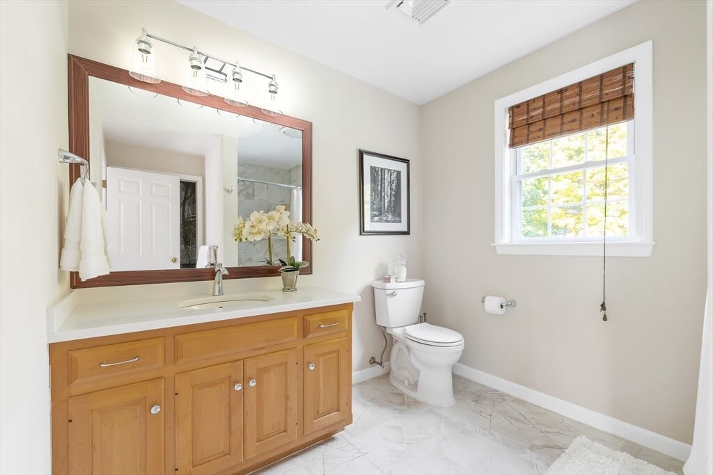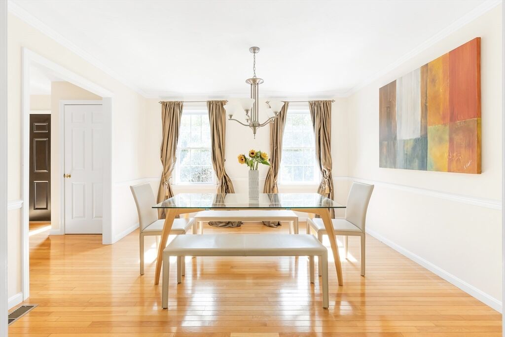 Don't miss this stunning Colonial combining classic charm with modern finishes. The curb appeal is enhanced w/ a new front door and granite steps.This updated home features 4 bedrooms, 2.5 baths & a 2-car garage. Cathedral-ceiling living room w/ hardwood floors is filled with natural light. Chef’s kitchen includes custom maple cabinetry, granite counters, Kohler touchless faucet & stainless-steel appliances.The formal & informal dining spaces open to a large composite deck, perfect for entertaining. A laundry room & half bath round out the first floor. Upstairs the primary suite offers 2 walk-in closets & spa-like bath with Jacuzzi, quartz vanity, new large shower Niche & Kohler fixtures. Additional bedrooms feature new carpet & an updated stylish 2nd full bath. The finished lower level extends the living space with a home theater, gym/studio, workshop & storage. Energy-efficient 8.40 kW solar panels, whole-house water filter & smart lighting make this move-in ready home truly special.