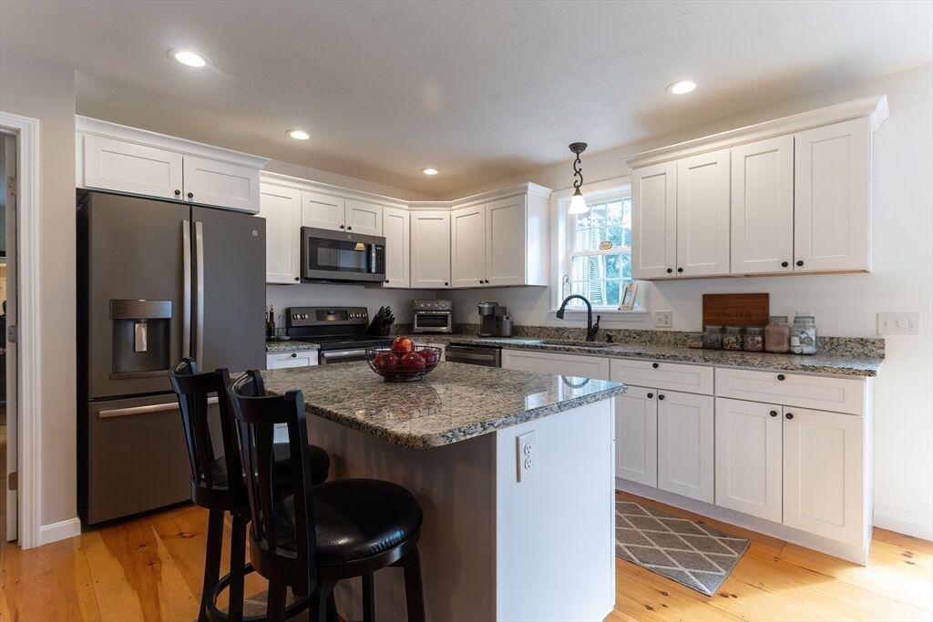 Welcome to this beautifully maintained 3-bedroom, 2.5-bath ranch offering over 2 acres of serene privacy. The open-concept layout seamlessly connects the granite kitchen—complete with recessed lighting, an island, and abundant cabinetry—to the spacious dining and living areas, perfect for entertaining or everyday living. The main suite features wide plank pine wood floors, a walk-in closet, and a private full bath flooded with natural light. Enjoy the ease of one-level living with the added bonus of a finished walk-out basement, ideal for a potential in-law suite or home office. A 2-car garage, outdoor shed, and tree-lined yard complete this picture-perfect property. All major systems are just 7 years young, and a brand-new tankless hot water heater adds peace of mind. Truly move-in ready—don’t miss this rare opportunity! Set up a private showing or come to the Open House on Sunday, Nov.2, 11-1pm!