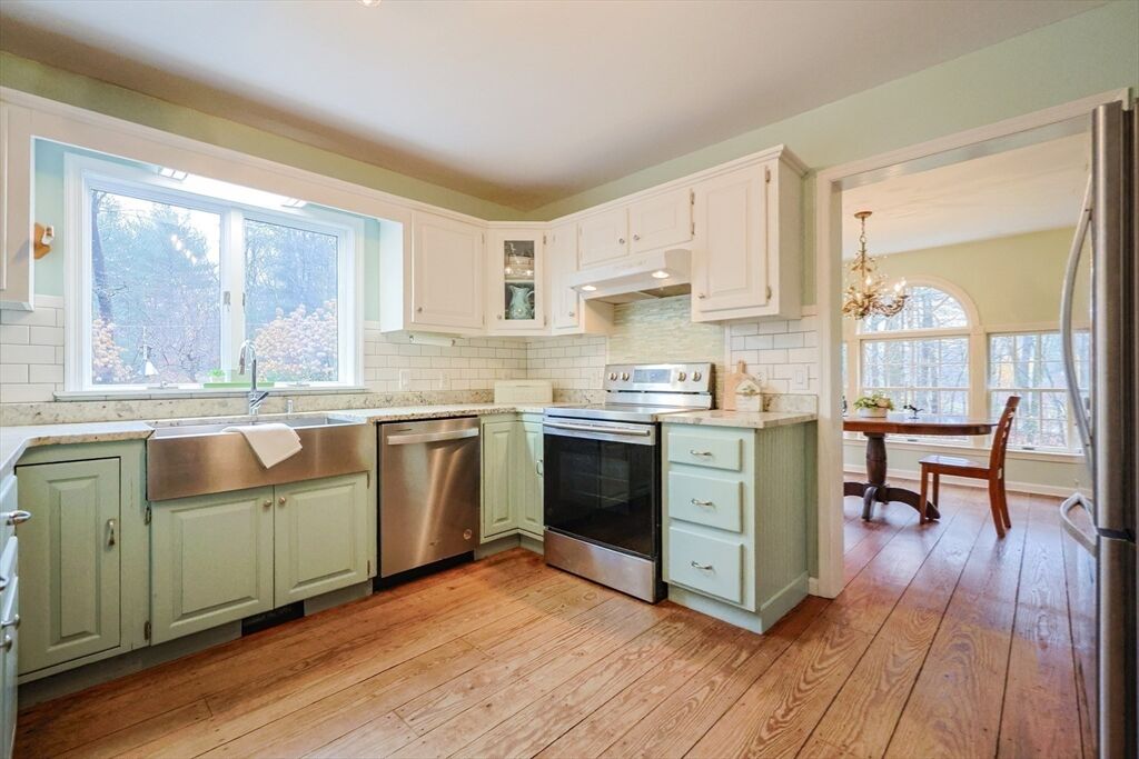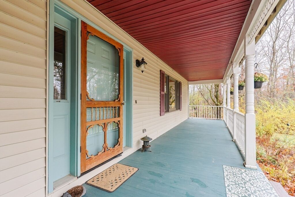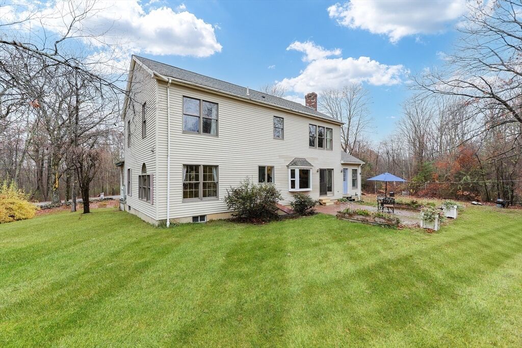 BEST AND FINAL OFFERS DUE 11/17 AT 5:00 PM NO ESCALATION CLAUSES. Beautiful 4-bedroom, 2.5-bath Colonial offers comfort, charm, and thoughtful updates throughout. The updated eat-in kitchen features granite countertops, stainless steel appliances, and wood (SYP) floors that flow into a formal dining room and spacious living area—perfect for entertaining. The first floor also includes a convenient half bath and laundry room. Relax on the inviting 4-season porch or step out to the brick patio overlooking a peaceful, private yard. Upstairs, the primary en suite offers a walk-in closet and renovated bath. Three additional bedrooms and a full bath complete the second floor. The attached 2 car garage provides ample loft storage for convenience. Includes an Econoburn wood burning boiler that is integrated into the hot water system to help with heating bills! Brand new septic tank and D-Box (2025). Main roof 2013; porch/garage roof 2025.