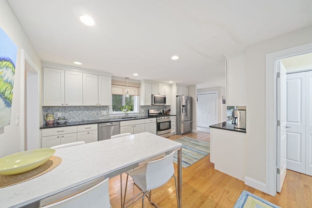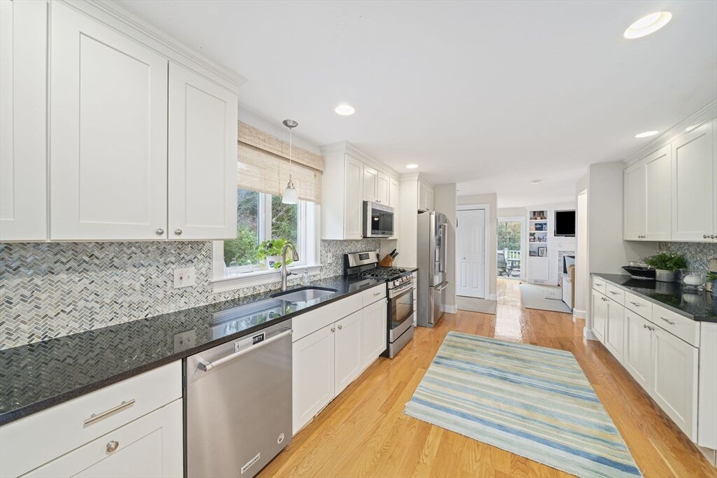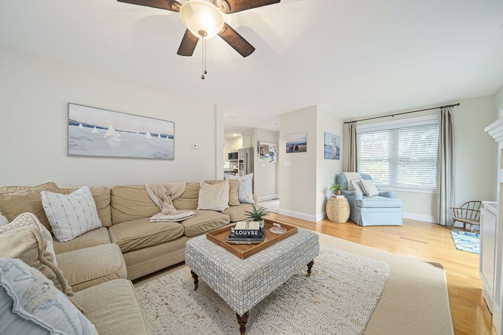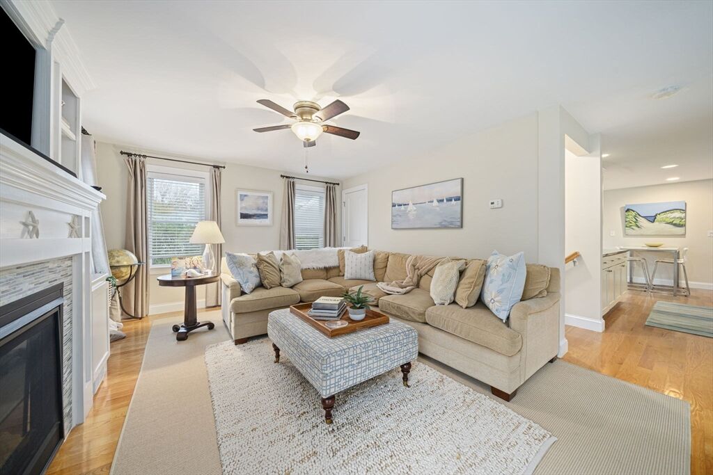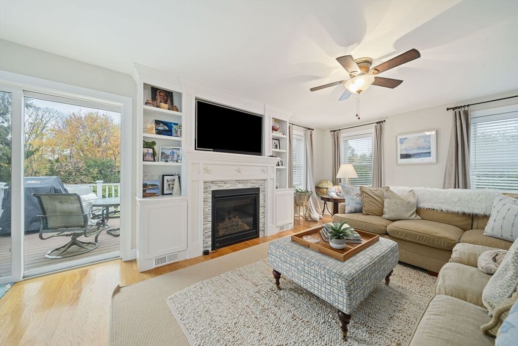 Welcome to this picturesque NE farmhouse-style home conveniently situated in the heart of Cohasset. The front sunroom entrance leads to this turnkey home which offers an open floor plan, high ceilings and gleaming hardwood floors. The chefs’ kitchen features gas cooking, a custom backsplash, stainless steel appliances and an eat-in area. Adjacent to the kitchen is a formal dining room, ideal for hosting future holiday meals and entertaining. The living room is off the kitchen with its custom-built-in bookshelves and mantle and a cozy gas fireplace. A large slider offers an abundance of natural light and leads to a private deck overlooking a private yard. The second floor features the guest bathroom and three bedrooms, one of which is ann oversized primary suite with a spacious bedroom, bath with a large shower, double vanity, and walk-in closet. The finished lower level includes a gymnasium or playroom, storage and a slider to the backyard, hot tub, and patio. See attached video!!!