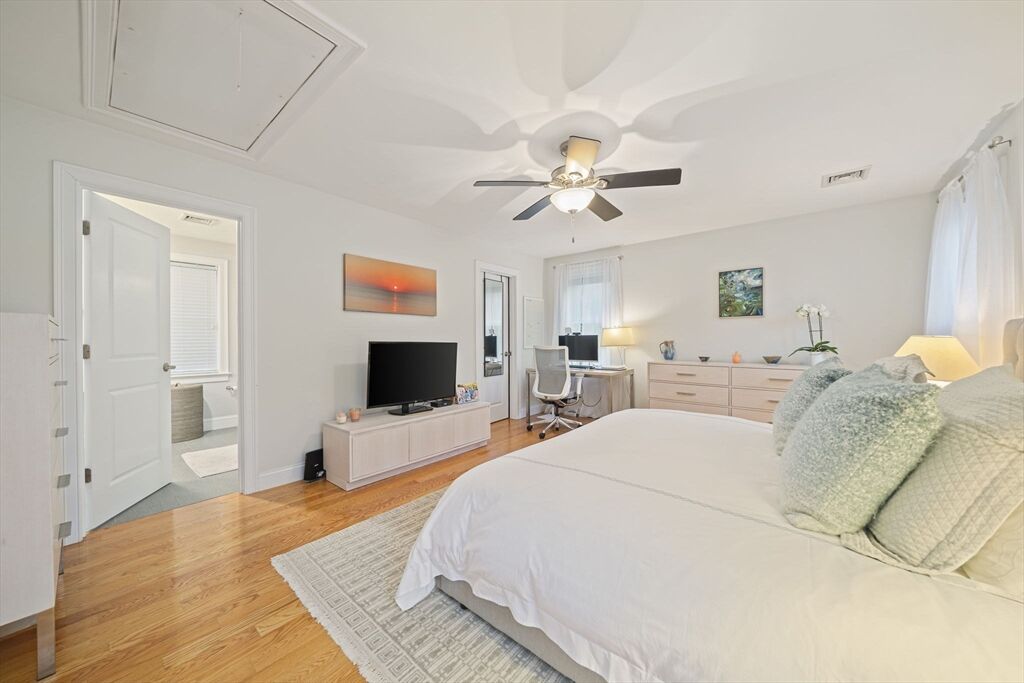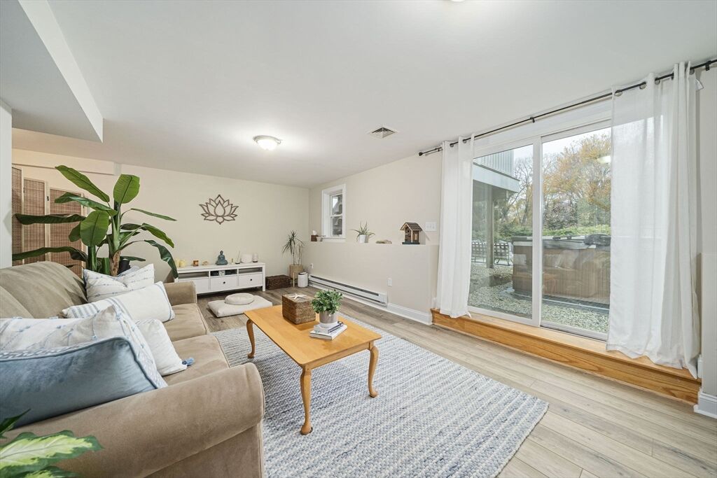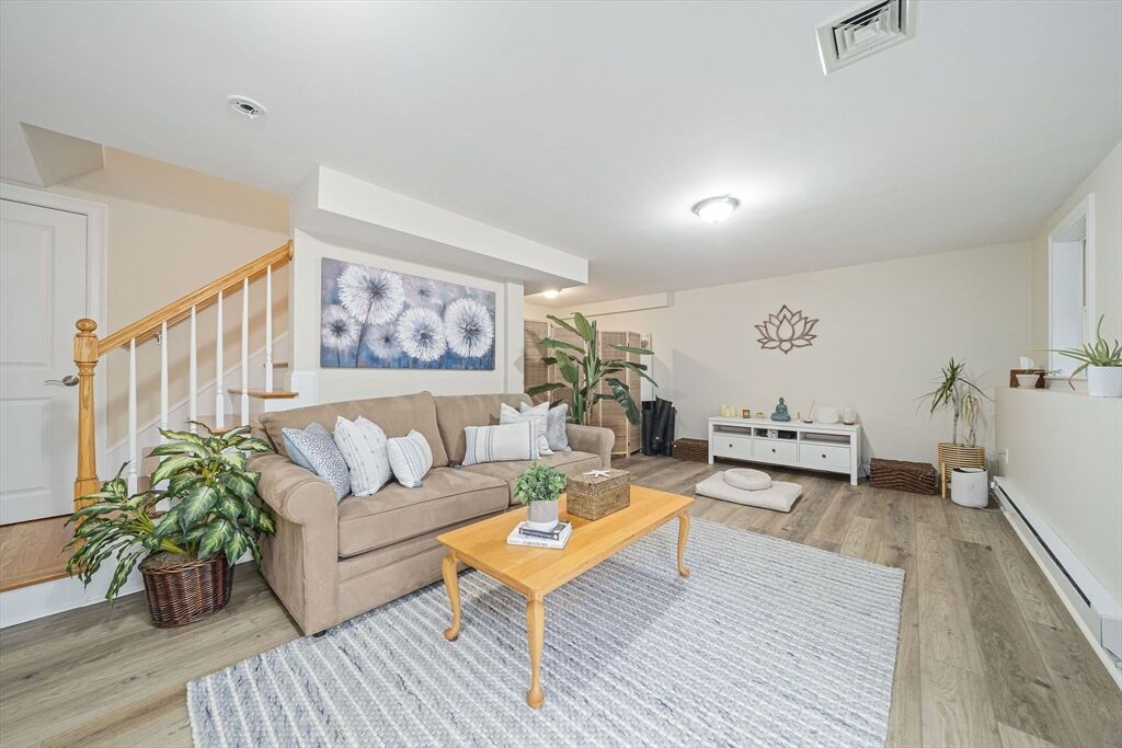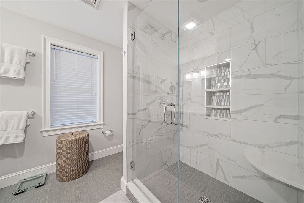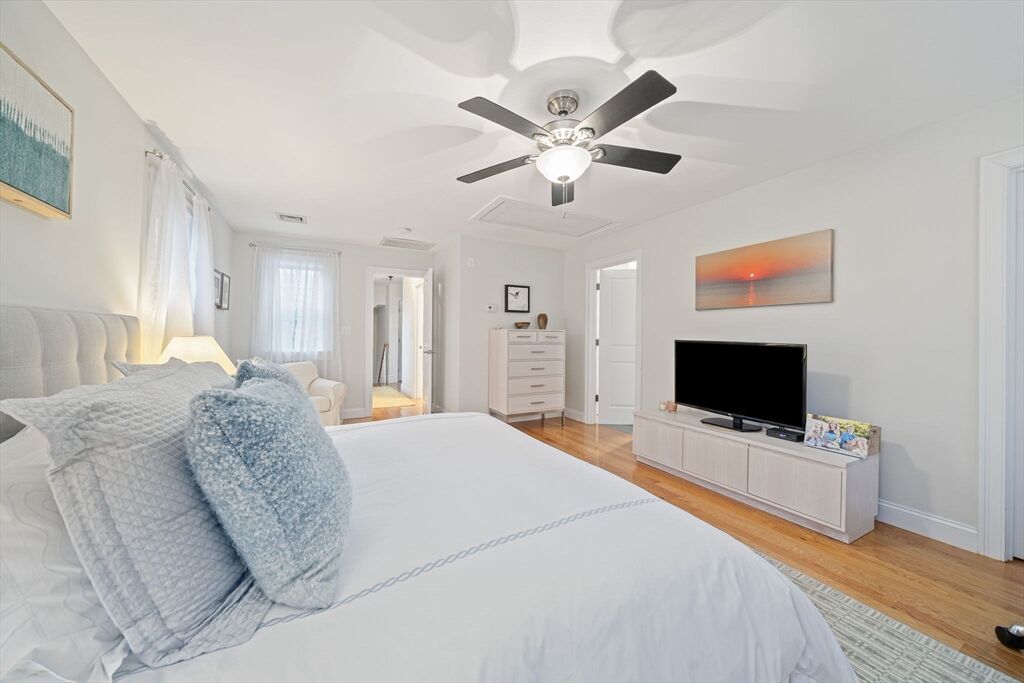 Welcome to this picturesque NE farmhouse-style home conveniently situated in the heart of Cohasset. The front sunroom entrance leads to this turnkey home which offers an open floor plan, high ceilings and gleaming hardwood floors. The chefs’ kitchen features gas cooking, a custom backsplash, stainless steel appliances and an eat-in area. Adjacent to the kitchen is a formal dining room, ideal for hosting future holiday meals and entertaining. The living room is off the kitchen with its custom-built-in bookshelves and mantle and a cozy gas fireplace. A large slider offers an abundance of natural light and leads to a private deck overlooking a private yard. The second floor features the guest bathroom and three bedrooms, one of which is ann oversized primary suite with a spacious bedroom, bath with a large shower, double vanity, and walk-in closet. The finished lower level includes a gymnasium or playroom, storage and a slider to the backyard, hot tub, and patio. See attached video!!!