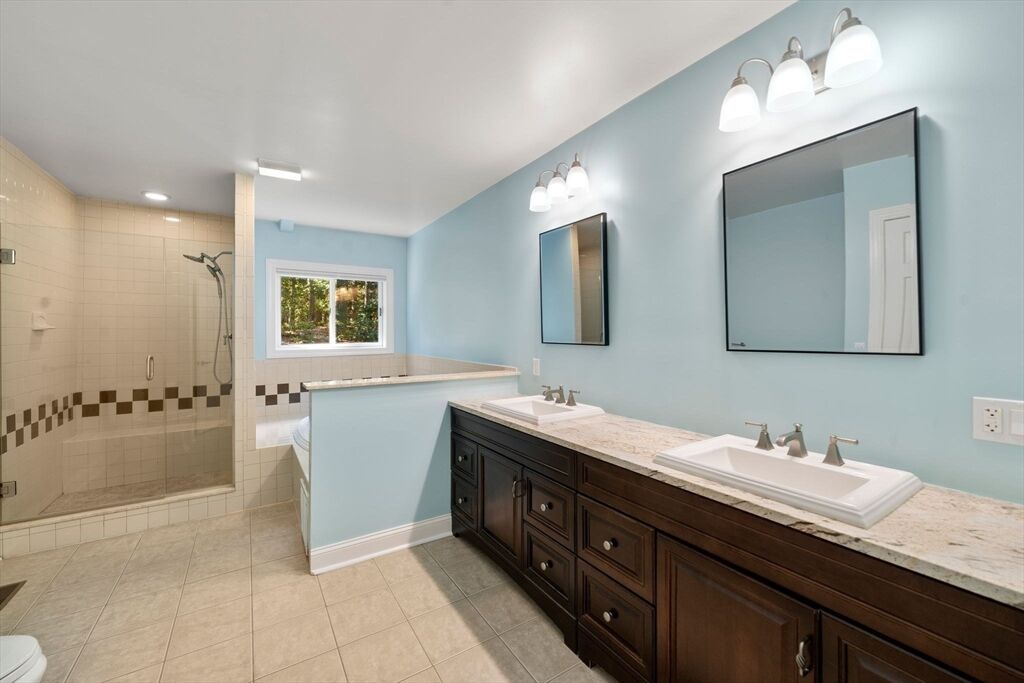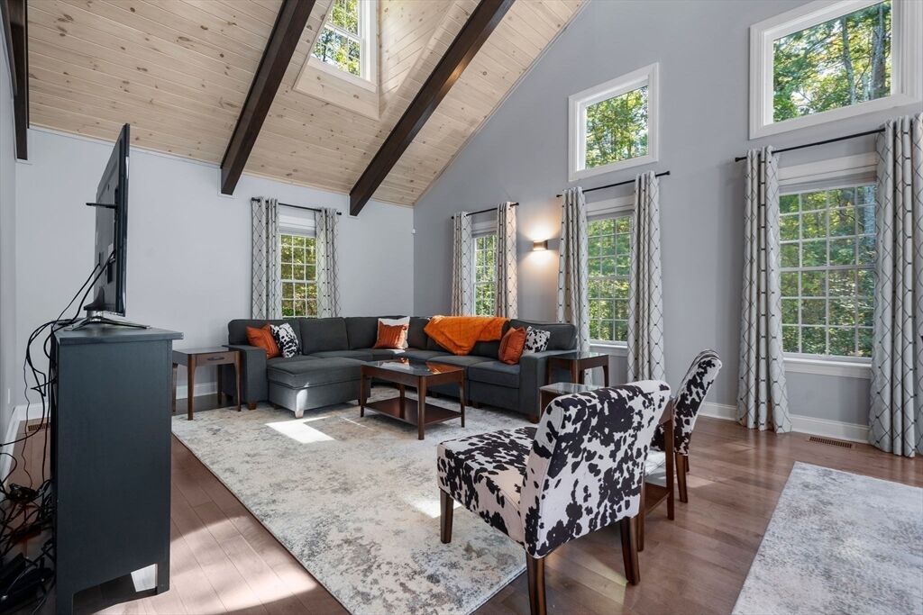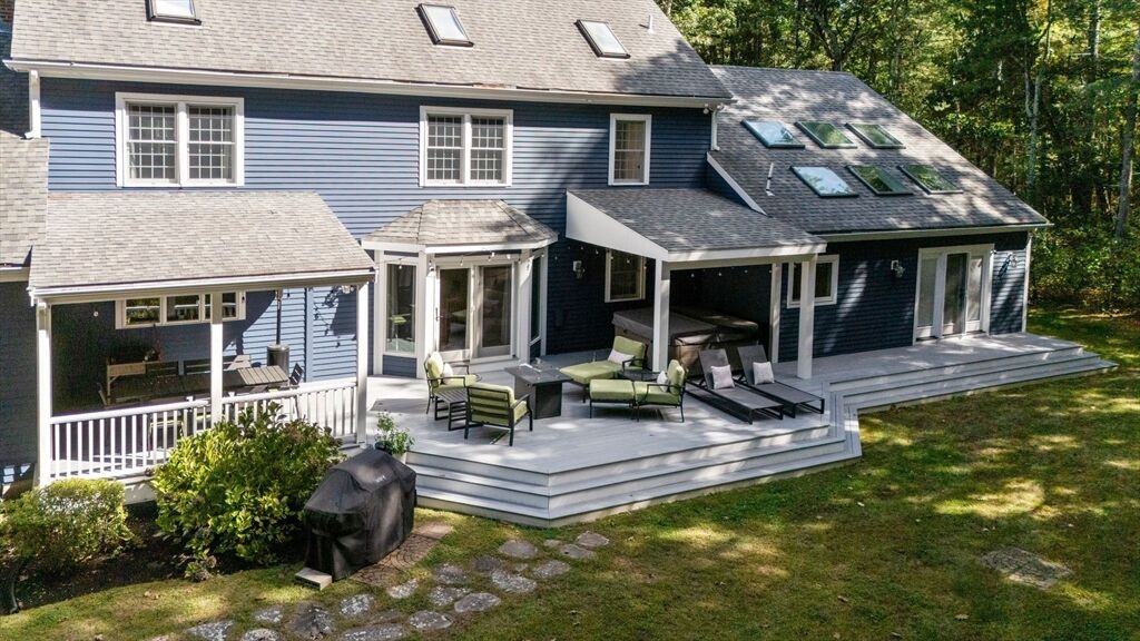 Welcome to 12 Dutton Park Drive — a modern retreat set on 3.5 acres of private, tree-lined land in one of Walpole’s most desirable neighborhoods. This stunning 5-bed, 5-bath home offers a perfect blend of design, functionality, and comfort. The main level features a sun-filled open layout with a custom kitchen, high-end appliances, and a spacious dining and living area designed for effortless entertaining. Upstairs, the serene primary suite includes a spa-like bath and generous walk-in closet, while additional bedrooms offer space for family, guests, or a home office. The finished lower level adds bonus living space for a gym, media room, or play area. Step outside to your expansive yard and deck, surrounded by mature trees and natural beauty. With central air, attached garage, and close proximity to Walpole Center, schools, and major routes, this home captures the best of suburban living with a modern edge.