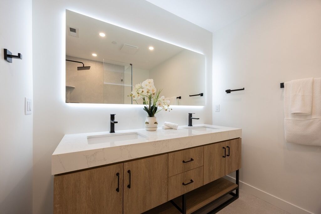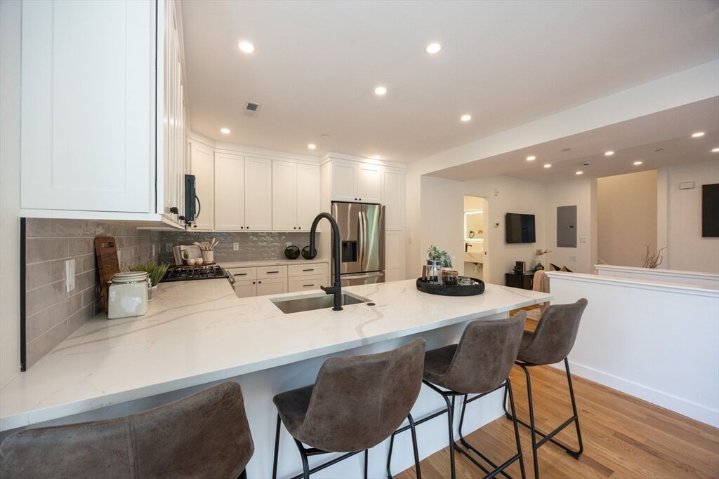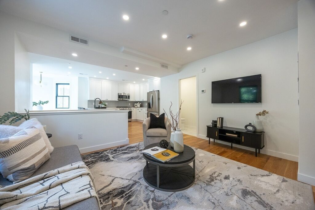 Presenting the convenience, luxury and prestige of the Residences at Royall Park, a perfectly and completely renovated three unit property situated in the foothills of Tufts University. Spread over two floors, Unit 3 boasts an inviting and open floor plan. The main floor consists of a quartz laced bright kitchen with LG stainless steel appliances, peninsula, dining area, half bath, and a spacious living room. Highlighting the level is a generous 18'x10' composite deck that overlooks the historic Royall House grounds and is perfect for entertaining or just relaxing. Upper floor features 3-4 bedrooms with home office option and incorporates a great primary bedroom suite, two sparkling full baths & washer/dryer all boasting inviting views. Central air, gas heat, gleaming hardwood floors, Hardie Plank Siding, off street driveway parking, and a large yard, augments the value. Walk to the Green Line and Medford Square with easy access to Route 93, Assembly Row, Davis Sq and Downtown Boston.