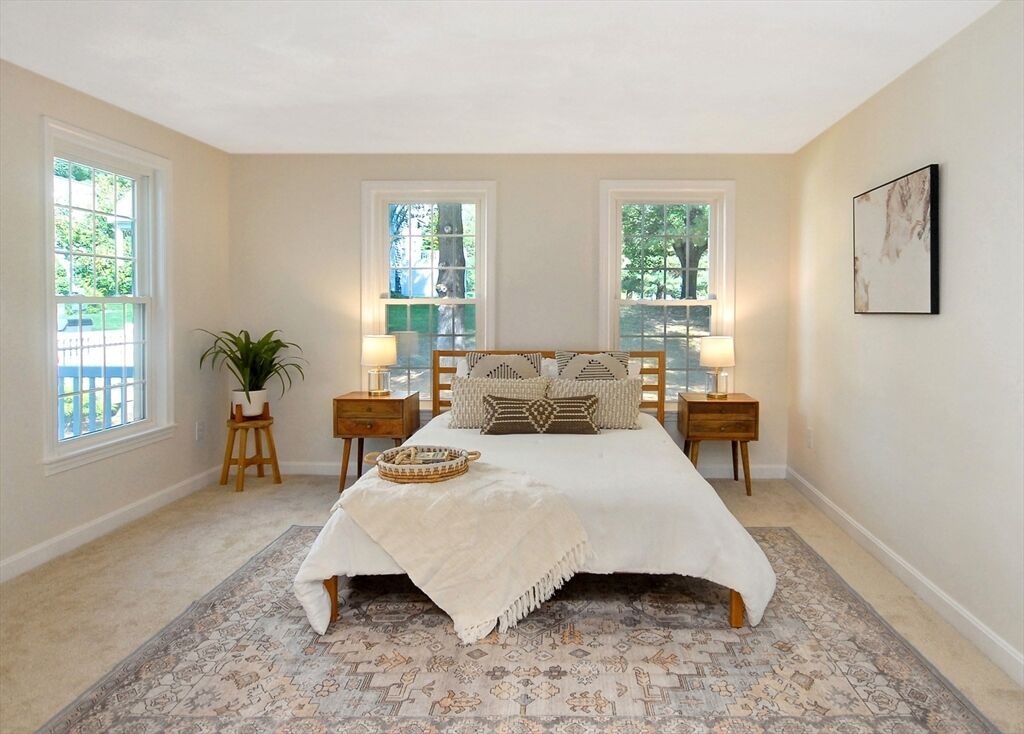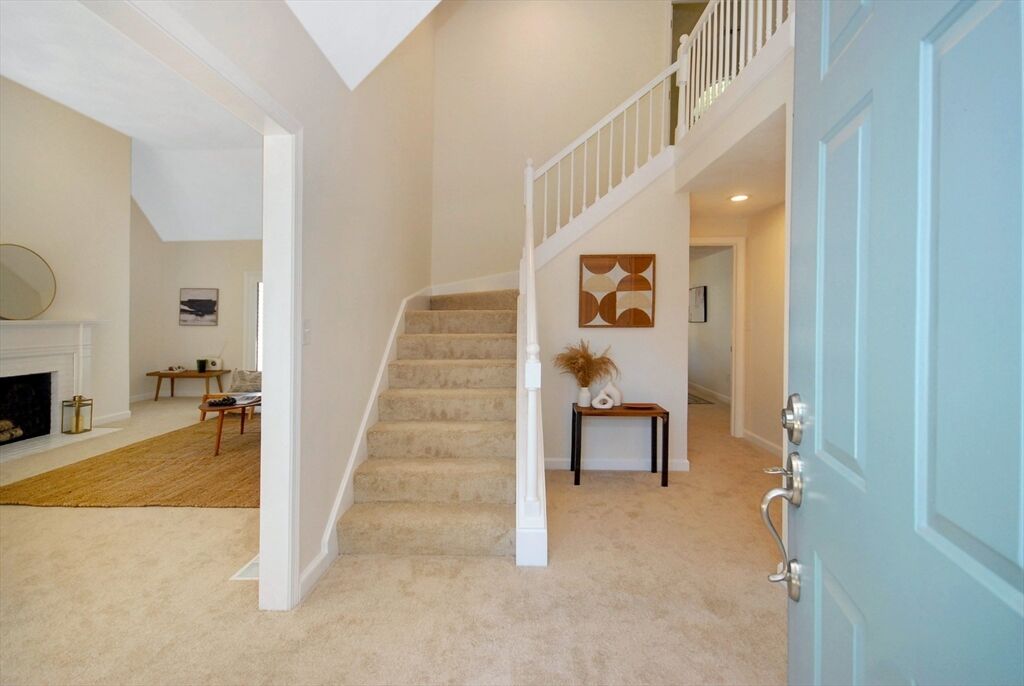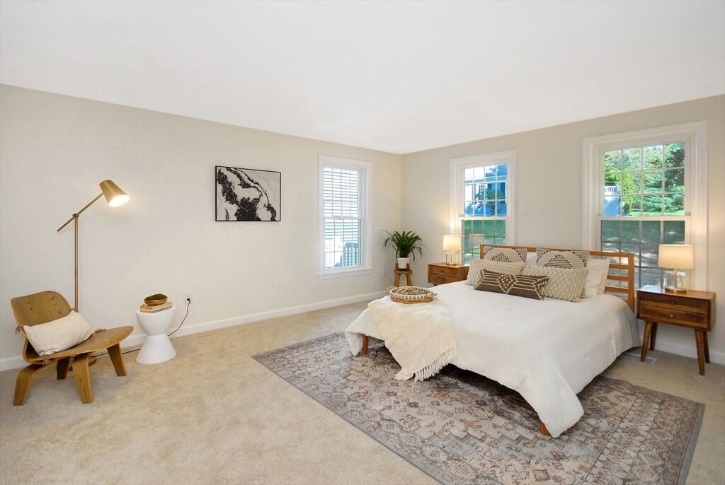 Soaring ceilings, abundant natural light, and expansive windows define this 3 bed, 2.5 bath Bedfordshire townhouse. 12 Mitchell Grant Way combines the ease and comfort of condominium living with the luxury of a park-like community that features a Residents-only, 9 hole Golf Course! The home’s inviting private entry opens to newly installed flooring, freshly painted rooms, & updated fixtures. Enjoy a sunny eat-in kitchen with oak cabinets & recessed lighting. Relax by the fireplace beneath vaulted ceilings in the Great Room where two sets of elegant French doors lead outdoors to both a patio & a composite deck. The first floor primary suite provides a peaceful retreat with an en-suite bath & walk-in closet. A half bath & laundry complete this level. 2 additional bedrooms & a full bath are found upstairs. The generous basement offers room to expand & a detached garage adds everyday convenience. Ideally located near Rt3, I-95, shopping and dining, this is Bedford living at its best!