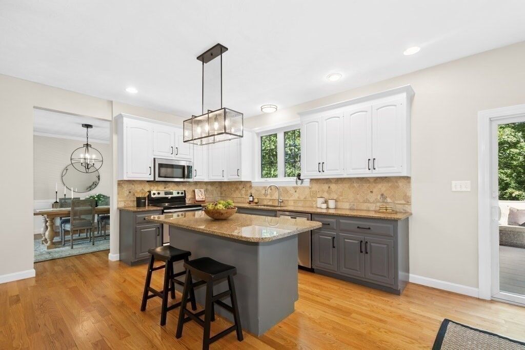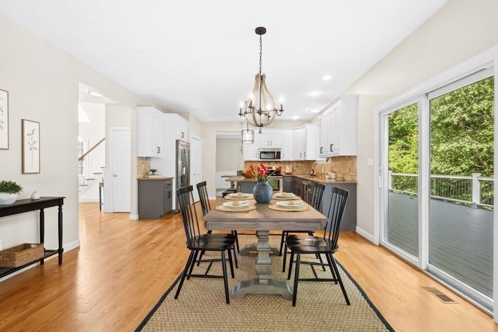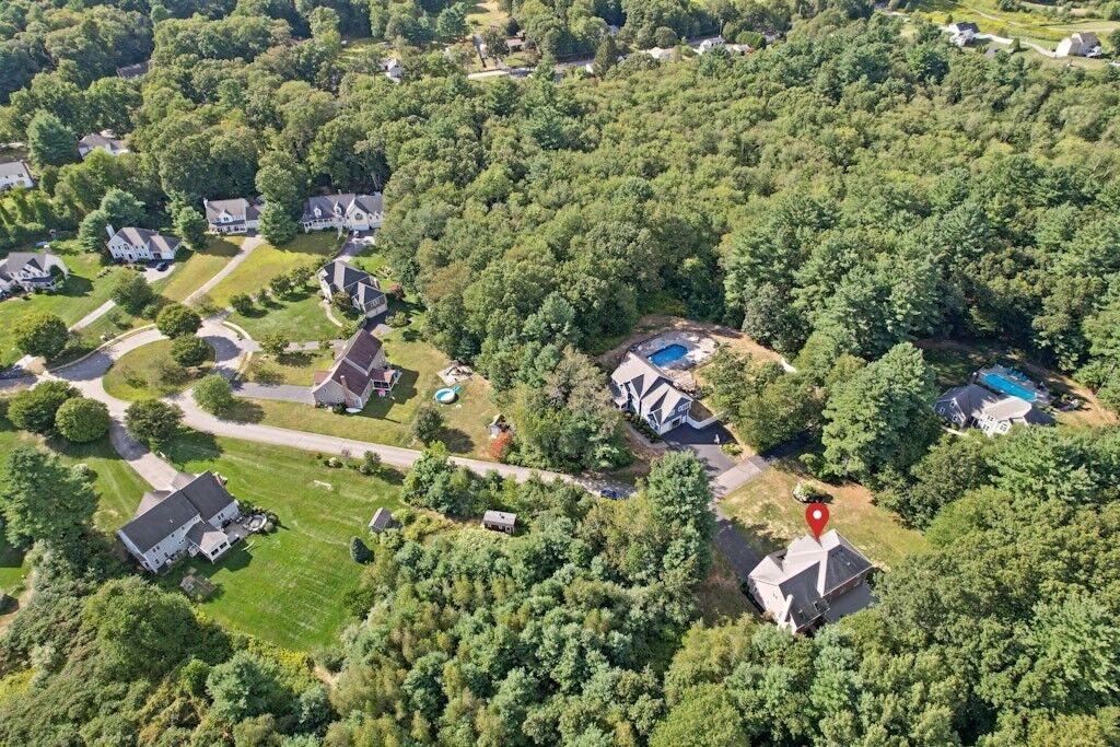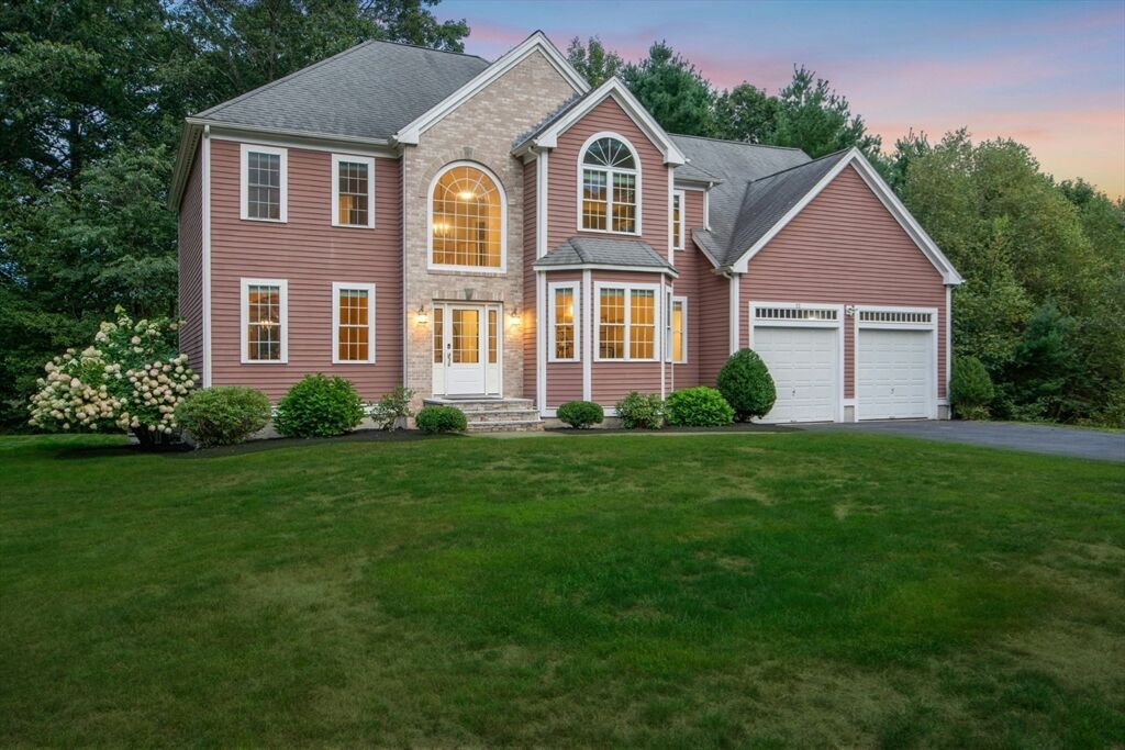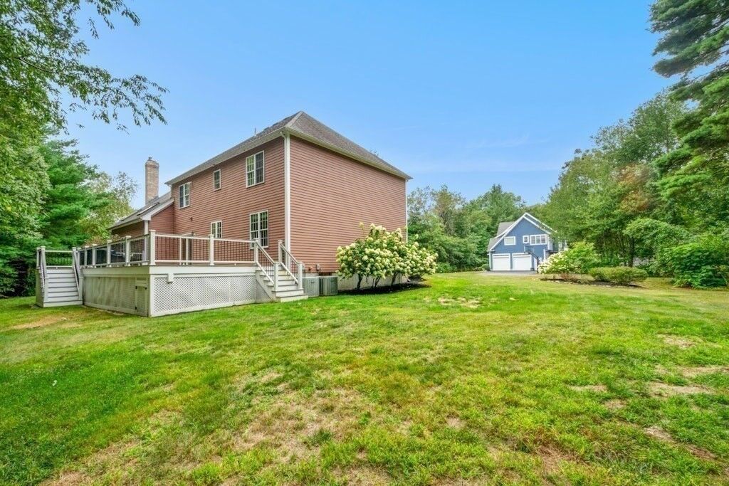 Tucked away at the end of a cul-de-sac in the desirable Miscoe Farms neighborhood, this stunning home offers both privacy and community all while abutting open space. Enter a grand foyer with a sweeping staircase, refinished hardwood floors, and fresh paint throughout. The elegant living & dining rooms are accented with crown molding, wainscoting, and stately columns. The eat-in kitchen boasts granite counters, tile backsplash, a center island, and pantry. A private home office and first-floor laundry add convenience, while the dramatic cathedral great room with wood stove is filled with natural light. Upstairs, hardwoods continue into the expansive primary suite with spa-like bath featuring dual sinks, granite, soaking tub, and walk-in closet. Three additional bedrooms and a full bath complete the second level. The finished lower level offers a full bath, custom bar, media and game room. An oversized composite deck overlooks a serene private yard—ideal for entertaining or relaxing!