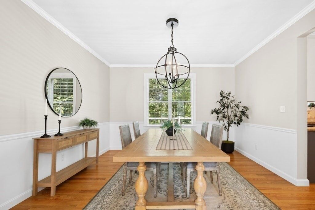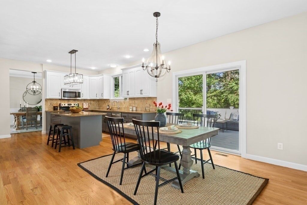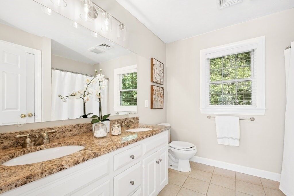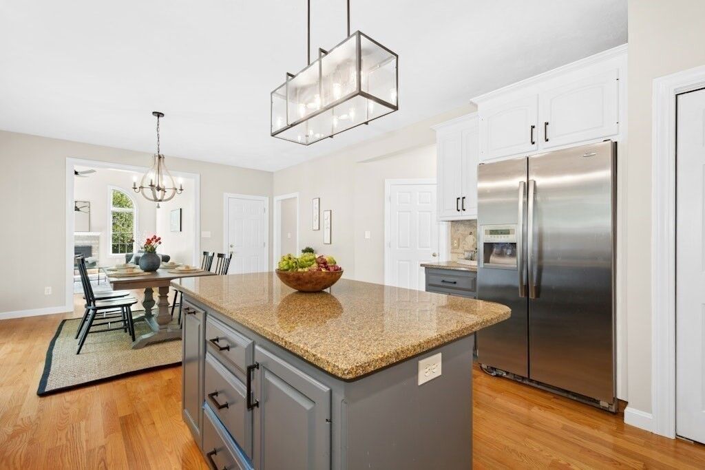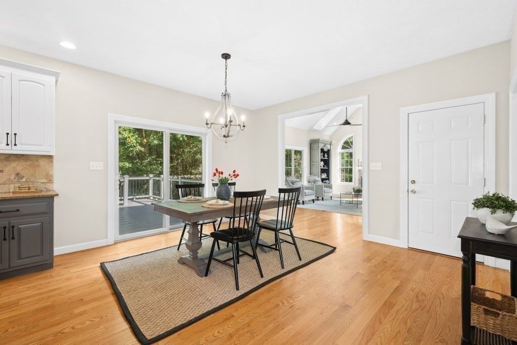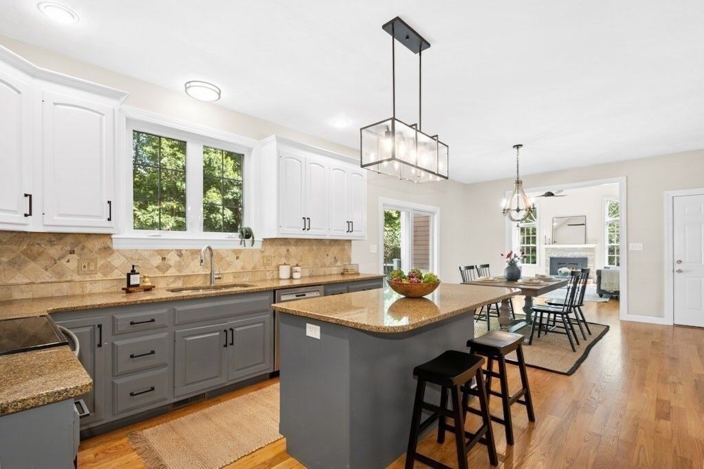 Tucked away at the end of a cul-de-sac in the desirable Miscoe Farms neighborhood, this stunning home offers both privacy and community all while abutting open space. Enter a grand foyer with a sweeping staircase, refinished hardwood floors, and fresh paint throughout. The elegant living & dining rooms are accented with crown molding, wainscoting, and stately columns. The eat-in kitchen boasts granite counters, tile backsplash, a center island, and pantry. A private home office and first-floor laundry add convenience, while the dramatic cathedral great room with wood stove is filled with natural light. Upstairs, hardwoods continue into the expansive primary suite with spa-like bath featuring dual sinks, granite, soaking tub, and walk-in closet. Three additional bedrooms and a full bath complete the second level. The finished lower level offers a full bath, custom bar, media and game room. An oversized composite deck overlooks a serene private yard—ideal for entertaining or relaxing!