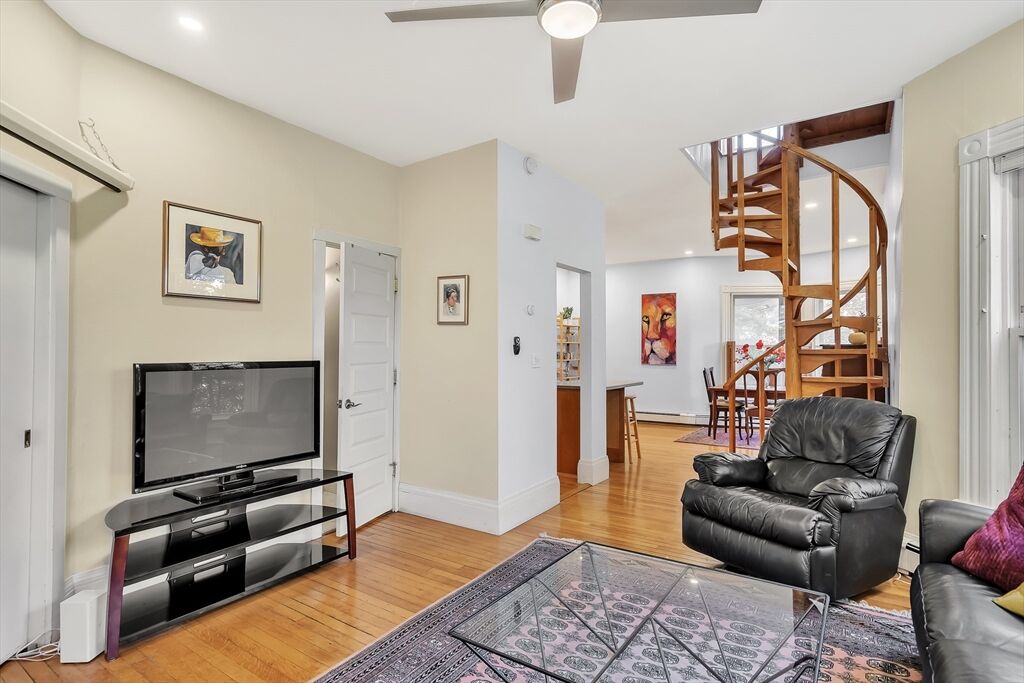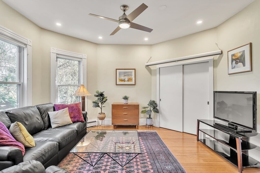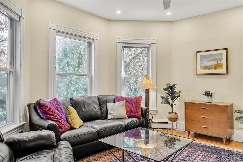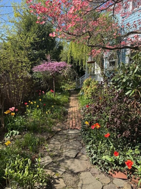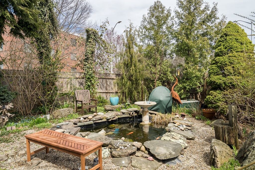 Bright & beautifully renovated two-level, 2 bedroom, 1 bath condo in a charming Victorian home just steps from Porter & Davis Square. The open first floor features high ceilings, bay windows, a modern kitchen with induction stove and breakfast bar, a dining area, & a separate living space perfect for entertaining. A spiral staircase leads to a bright loft that can flex as an office or 2nd bedroom, while the upstairs primary bedroom offers a serene retreat with a lovely stained glass window. The wrap-around private garden & koi pond are truly an urban oasis! Features include:• Gleaming hardwood floors throughout • High ceilings on both levels • Tall Bay windows • Original Victorian rosette trim • Ceiling fans • Private garden with Koi pond • Garage parking for one car • Nest thermostat • Laundry and storage in basement • Walk Score of 95, close to Red Line, bus lines, shops and restaurants. This unique home blends historic charm and modern convenience in a prime Cambridge location.