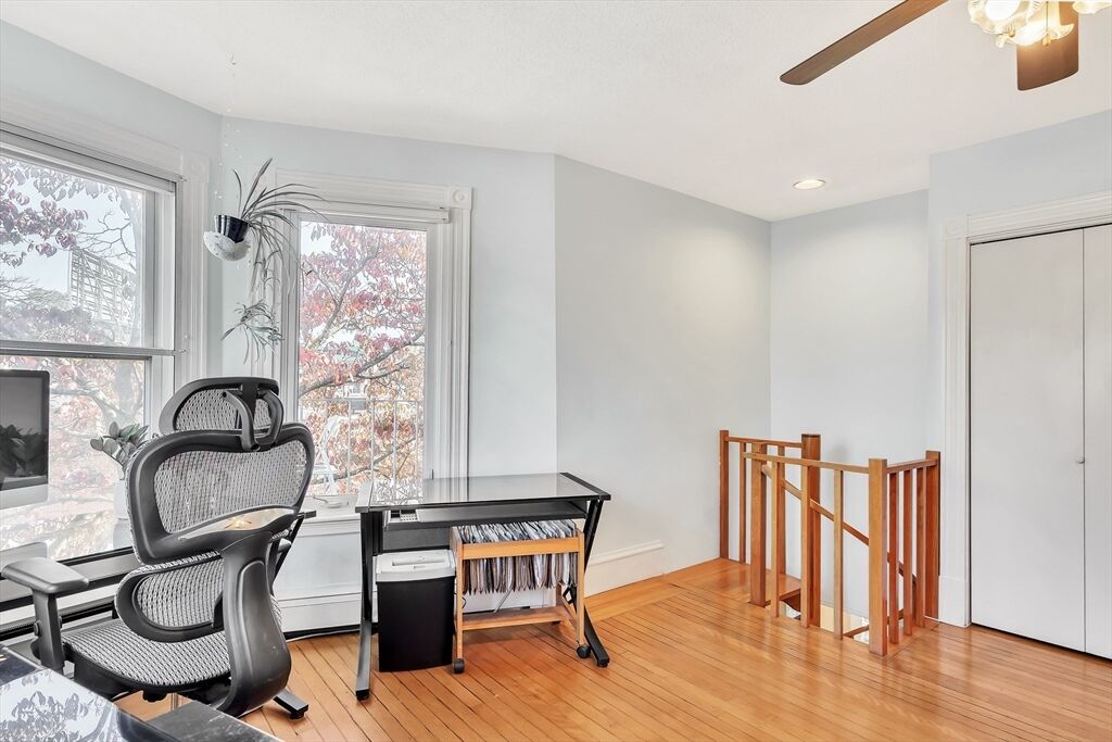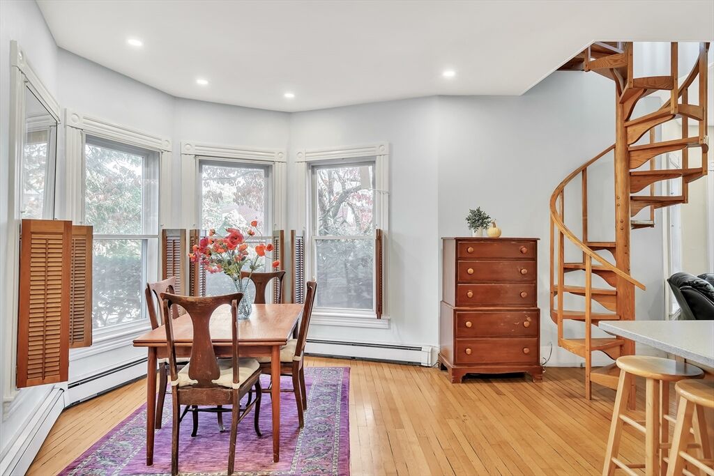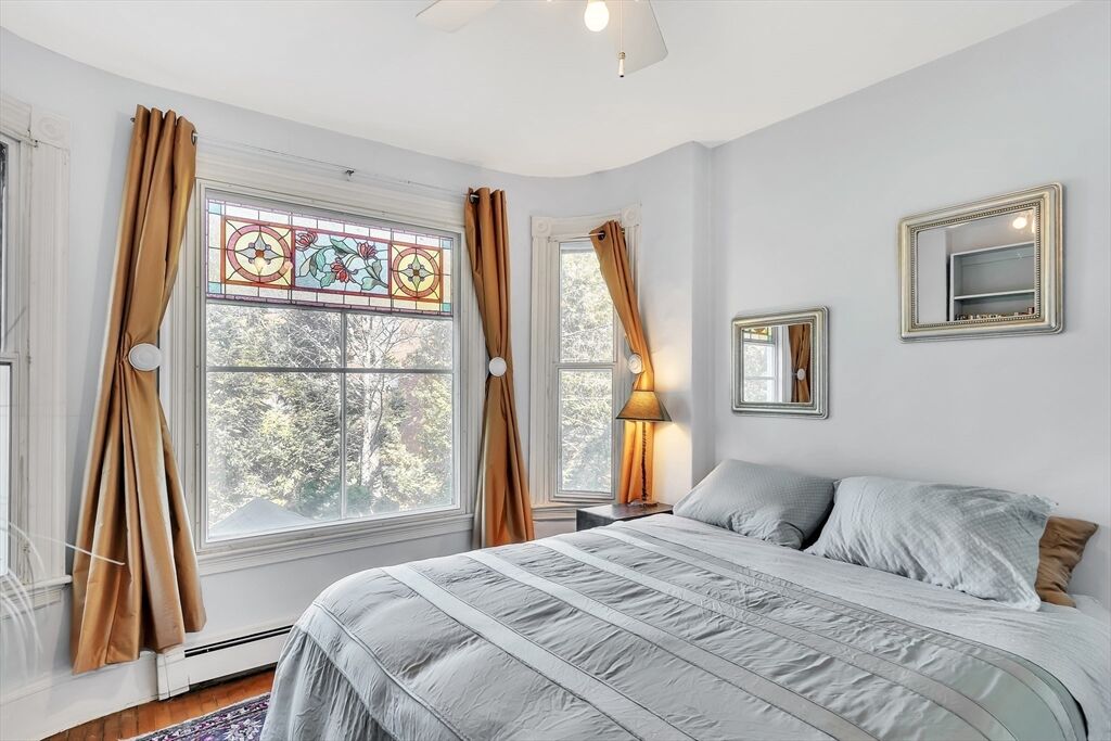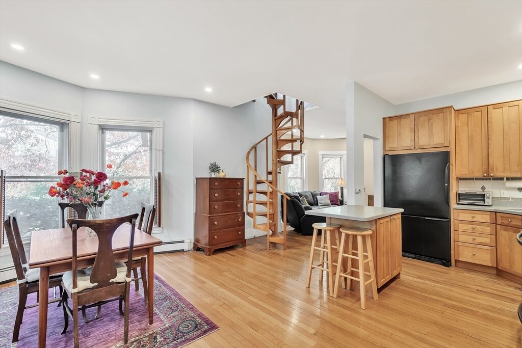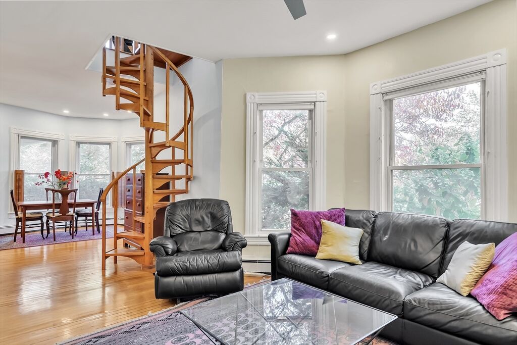 Bright & beautifully renovated two-level, 2 bedroom, 1 bath condo in a charming Victorian home just steps from Porter & Davis Square. The open first floor features high ceilings, bay windows, a modern kitchen with induction stove and breakfast bar, a dining area, & a separate living space perfect for entertaining. A spiral staircase leads to a bright loft that can flex as an office or 2nd bedroom, while the upstairs primary bedroom offers a serene retreat with a lovely stained glass window. The wrap-around private garden & koi pond are truly an urban oasis! Features include:• Gleaming hardwood floors throughout • High ceilings on both levels • Tall Bay windows • Original Victorian rosette trim • Ceiling fans • Private garden with Koi pond • Garage parking for one car • Nest thermostat • Laundry and storage in basement • Walk Score of 95, close to Red Line, bus lines, shops and restaurants. This unique home blends historic charm and modern convenience in a prime Cambridge location.