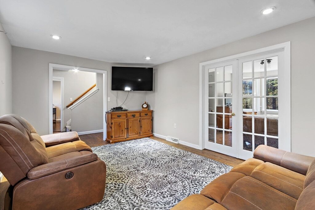 *Offer Deadline Tues 25th at noon* Your home for the New Year! This home is move-in ready! Upgrades include: refaced kitchen cabinets-granite counters-SS appliances-new paint througout-new carpet upstairs- a newer roof, cedar siding& heating system. Want more!? Step into your 3 season porch, filled with windows, leading to the newly finished HDWD floor living room with a cozy fireplace. Adjacent to this space, you'll find an updated half bath. The living room opens to the modern kitchen, bathed in natural light. A spacious family room with French doors that connect to the dining room completes the first floor. Upstairs, discover an expansive primary bedroom w/ Juliet balcony, along with two additional generously sized bedrooms and updated full bath featuring a tiled shower. The walk-out basement offers endless possibilities for a home office, teen hangout, gym or game room. The large yard is perfect for family gatherings and outdoor activities.