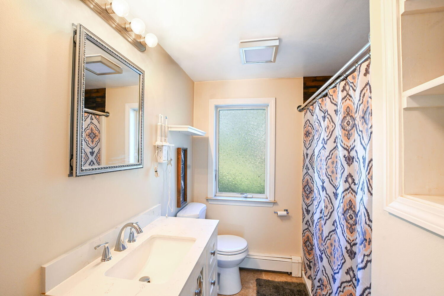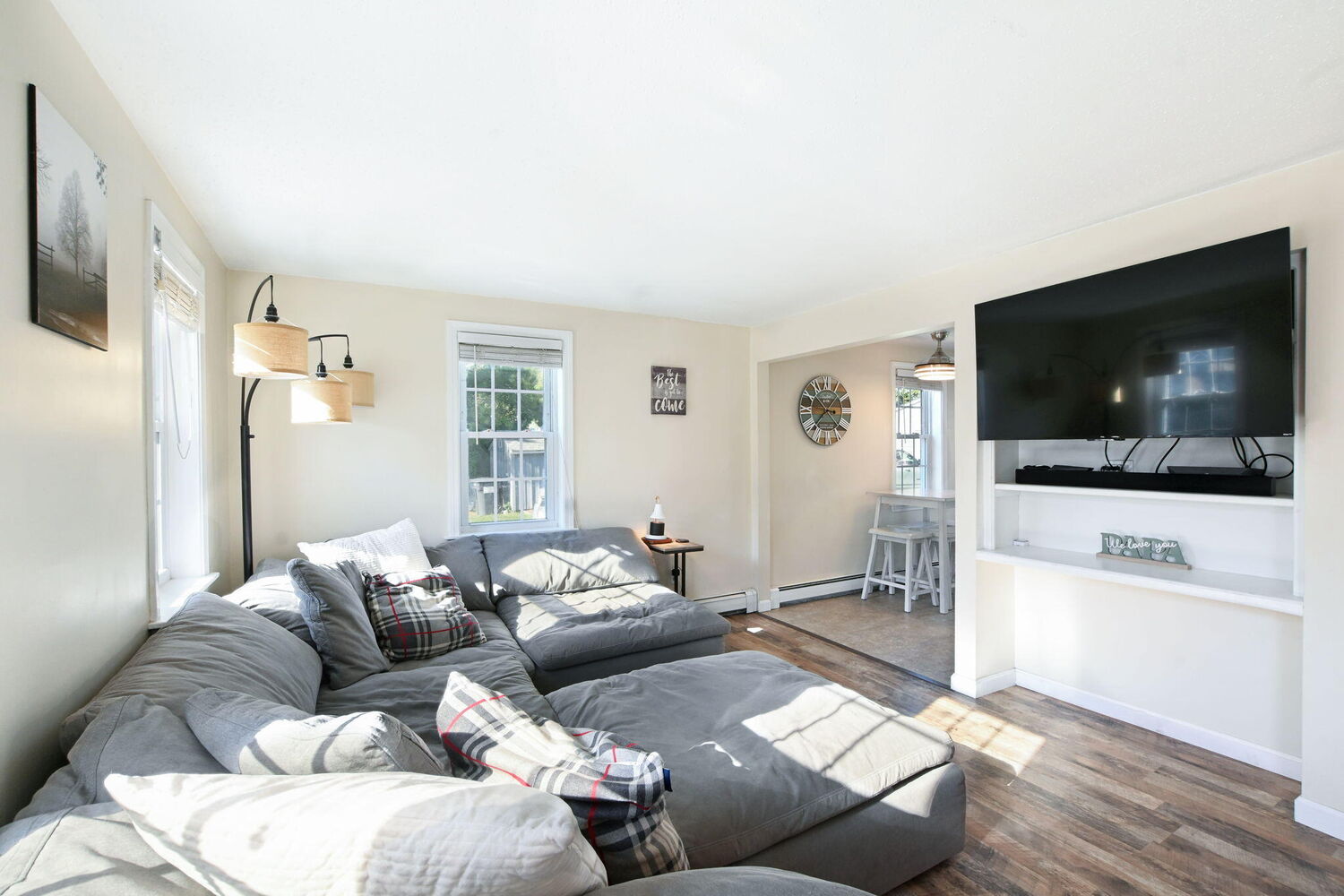 This beautifully updated 4-bedroom, 2-bath home offers modern comfort and style throughout. Enjoy a brand-new kitchen, bathrooms, flooring, windows, composite deck, and roof. Leased solar panels enhance energy efficiency, while the finished basement features a large built-in closet and direct laundry access. The spacious yard, circular driveway, and professionally landscaped front yard are perfect for outdoor living. A large detached garage with electricity provides ample storage for tools, equipment, or recreational gear. Don't miss the Cape Cod essential outdoor shower!