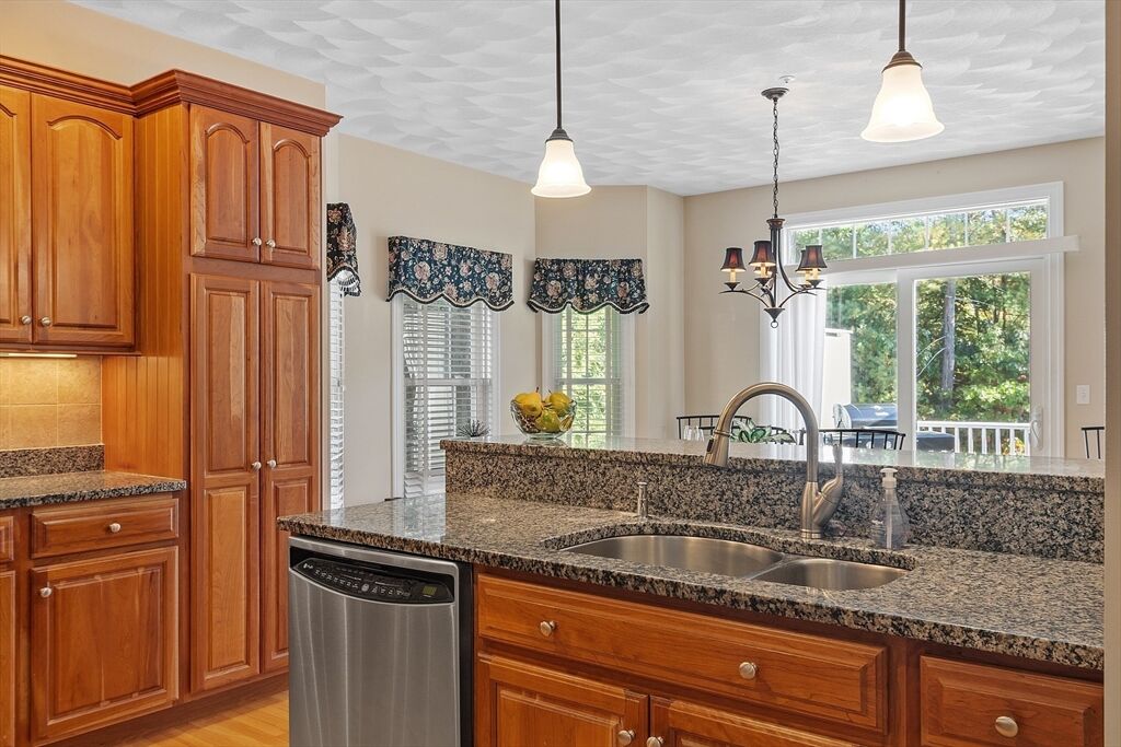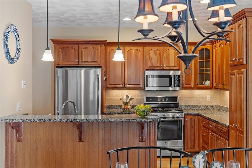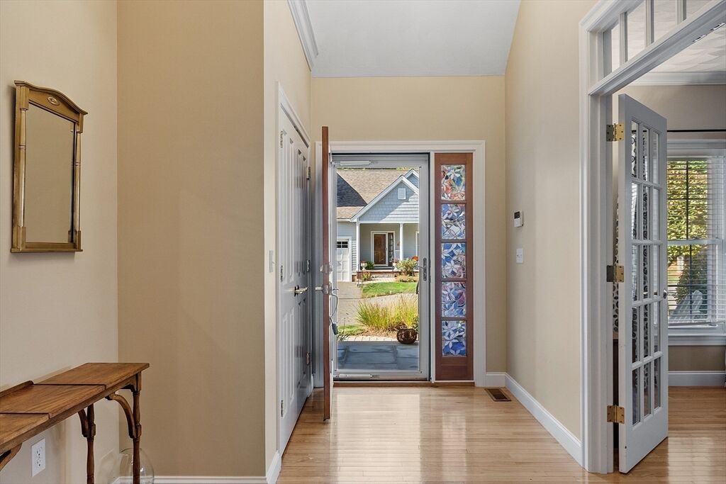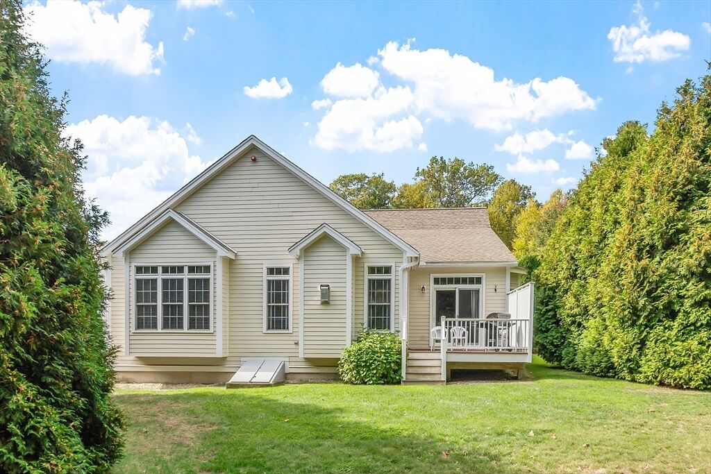 Welcome to Meetinghouse Commons, a desirable 55+ community of 85 single-family homes set on 32 scenic acres of orchards, trees, and walking paths. This charming neighborhood combines country tranquility with modern convenience.. The inviting front porch is perfect for morning coffee, while the back deck overlooks peaceful woods. Inside, the open floor plan connects the kitchen, dining, and living areas. The kitchen features hardwood floors, granite countertops, a breakfast bar, and GE Profile stainless-steel appliances including a 5-burner range. Handicap Access Features—The main bedroom includes a newly remodeled bath with a tiled, wheelchair-accessible walk-in shower. A first-floor laundry with storage. And a wheelchair lift to the garage for comfort and convenience. Across the street, Smolak Farm offers hayrides, apple or pumpkin picking and homemade donuts. Enjoy easy living, natural beauty, and a welcoming community — the perfect blend of comfort and country charm.