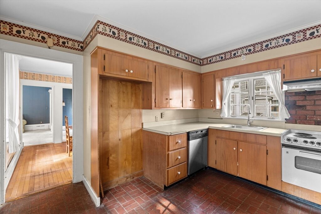 Nestled in the heart of idyllic Fairhaven Center, this stately 4 bedroom home offers timeless character and exceptional space. Showcasing original wood floors (under carpets) and period woodwork throughout, the home features a versatile layout. The first floor has the kitchen, half bath, stand alone shower, dining room and 3 adjoining parlors. There is currently a faux wall between 2 parlors making one room a first floor 5th bedroom. Upstairs, the four bedrooms and full bath can be accessed by the front or rear staircases. Large yard and ample off street parking ensures convenience. Close to Ft Phoenix, shopping, bike path, town hall, library and more.