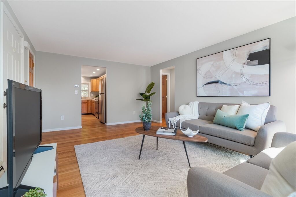 Bright and modern 2-bedroom, 1-bath condo in Woburn’s Cummingsville neighborhood. Natural light fills the spacious, open-concept living room, which features hardwood floors, a charming bay window, and built-in A/C. The eat-in kitchen combines modern stainless-steel appliances with warm wood cabinets, creating an ideal space for meals and entertaining. The bright, contemporary bathroom adds to the home's appeal, and the primary bedroom is tucked at the back for added privacy. Both bedrooms offer generous closet space. Recent building upgrades include a new roof, siding, a high-efficiency furnace, and a resurfaced parking lot. Enjoy the convenience of two deeded parking spots, a professionally managed 12-unit association, and common laundry facilities. Ideally located just minutes from Routes 95 & 93, Four Corners, Wayside Commons, Whole Foods, and Target.