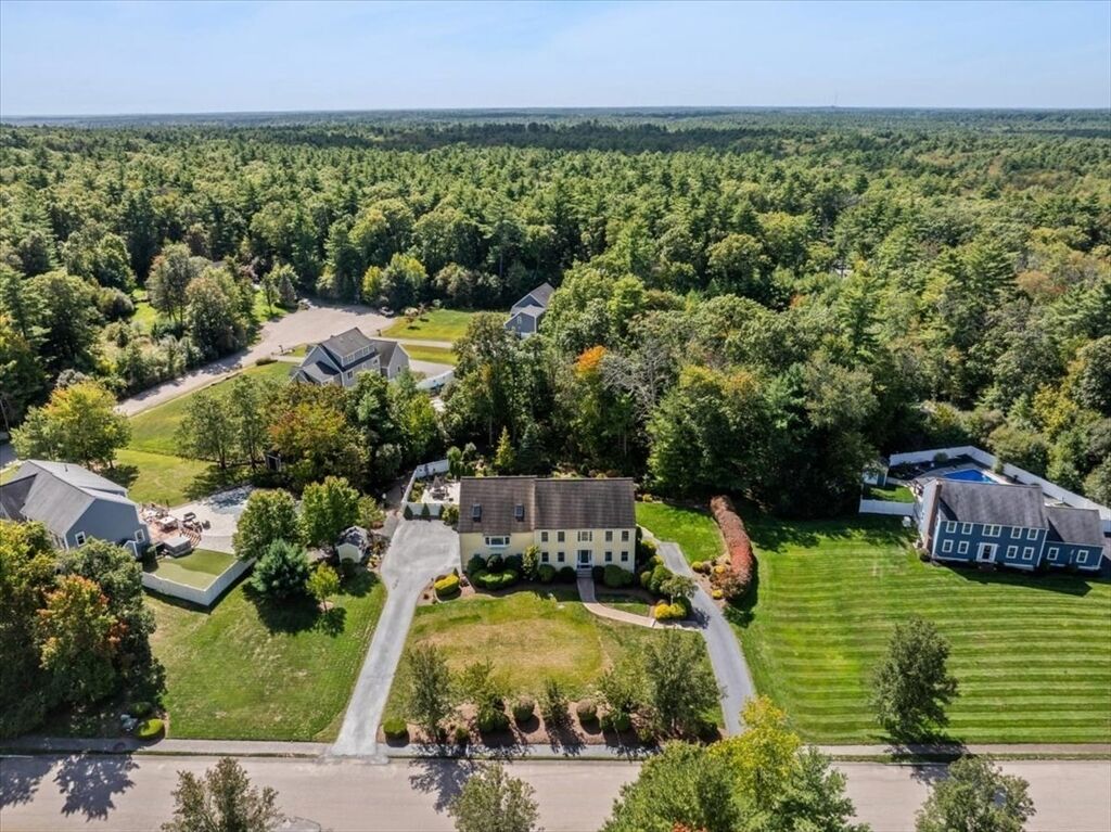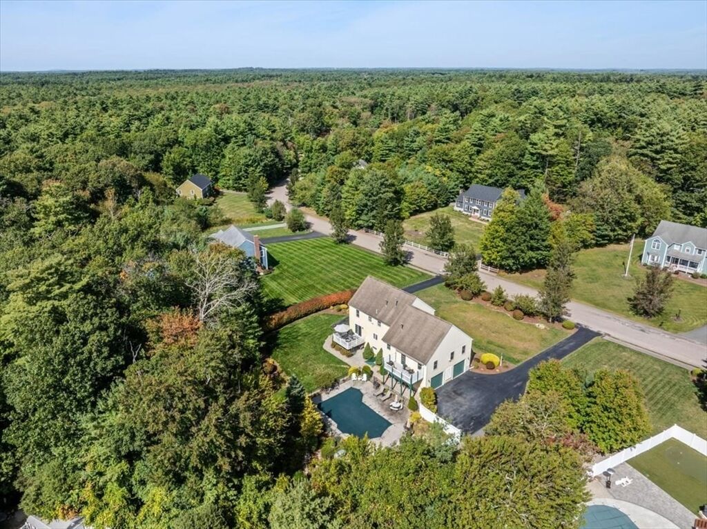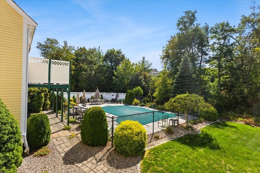 This beautifully maintained Colonial blends timeless design with modern living. The main level offers a welcoming foyer, spaces for casual and formal gatherings, a bright kitchen open to the dining and family room, and a first-floor living room with full bath that can also serve as a bedroom or office. Sliding doors from the dining area lead to the deck for easy outdoor living. The oversized two-car garage near the kitchen and complemented by driveways on both sides for ample parking. Upstairs, the primary suite is joined by two additional bedrooms and a full bath, while a private in-law suite provides its own bedroom with balcony, bath, kitchen, dining, and living areas—ideal for multi-generational living and guests. An unfinished basement offers storage and future potential. Outside, manicured landscaping and expansive lawns surround a backyard oasis with pool and patio. Quiet street close to town center, parks, library, shopping, dining, and MBTA Kingston Line to South Station.