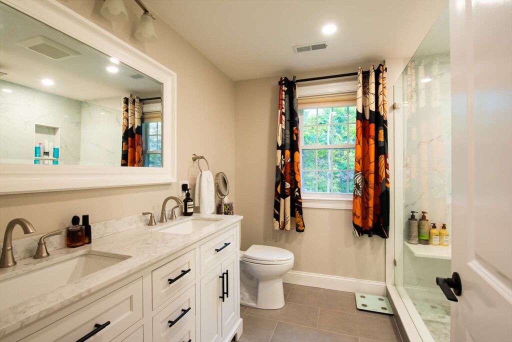 Completely renovated 3 Bedroom, 3 full bath custom ranch home with large covered front porch in highly desirable neighborhood. Open floor plan kitchen, dining and living room with wood burning fireplace & slider to large new rear deck. Kitchen with white shaker cabinets, large center island, custom quartz countertops and new stainless-steel appliances. First floor includes primary suite with custom walk-in closet, en-suite luxury bath with walk-in glass enclosed shower, 2 additional spacious bedrooms and laundry. Large lower level includes a den with wet bar and fireplace, game/exercise room, office, full bath, plenty of storage and walk out to large patio and level yard. Two car attached garage leading to the kitchen via mudroom with custom coat tree. Additional features include 200 amp electrical service, gas forced air heating, central A/C, and on-demand water heater. Large corner lot, town beach nearby. Top-rated public schools. Commuter dream location close to all major routes.