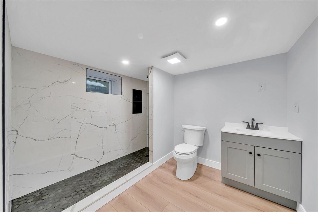 Fully Renovated & Move-In Ready! This stunning 4-bedroom + office, 2-bath single-family home offers modern style, space, and flexibility in a prime location. Every detail has been beautifully updated—from the gleaming hardwood floors throughout to the bright, open layout perfect for today’s lifestyle. The gorgeous new kitchen features granite countertops, a stylish backsplash, brand-new stainless steel appliances, abundant cabinetry, and a large window overlooking the big backyard. A large first-floor bedroom sits conveniently close to a full bath, perfect for guests or multigenerational living, The finished basement includes a full bath and might offer great potential for an in-law suite or guest space. An ADU might be a possibility. Enjoy the outdoors on this generous almost ½ acre corner lot with a big yard, ideal for entertaining. Two driveways provide parking for up to six cars. Conveniently located near schools, shops and major routes. Here comfort meets versatility and value!