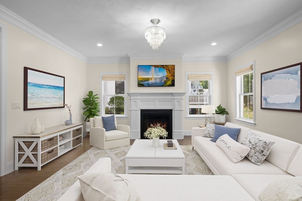 Welcome to The Village at Bailey’s Pond — Amesbury’s sought-after townhome community! This beautifully maintained 3-bedroom, 2.5-bath end unit offers abundant natural light, tree-line views, and a desirable private setting. The main level features 9-foot ceilings, red oak hardwood flooring, and a gas fireplace with custom millwork. The kitchen boasts granite countertops, stainless steel appliances, and generous cabinetry, perfect for everyday living or entertaining. Upstairs, the primary suite features hardwood floors and two spacious closets (one walk-in). Two guest bedrooms, a full bath, and laundry complete the second floor. The unfinished lower level with rough plumbing offers potential for expansion. Enjoy a private patio, two-car garage, and access to the clubhouse, nature trail, and proximity to downtown Amesbury, Newburyport, and major routes. *The kitchen, living, bedrooms, and patio have been virtually staged