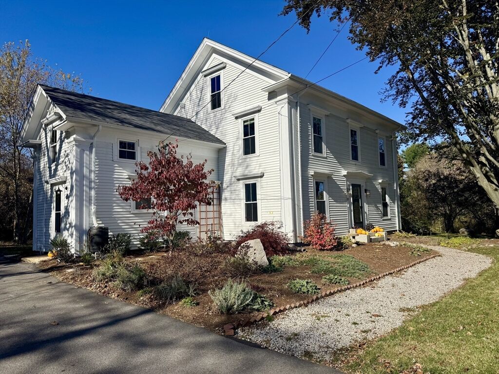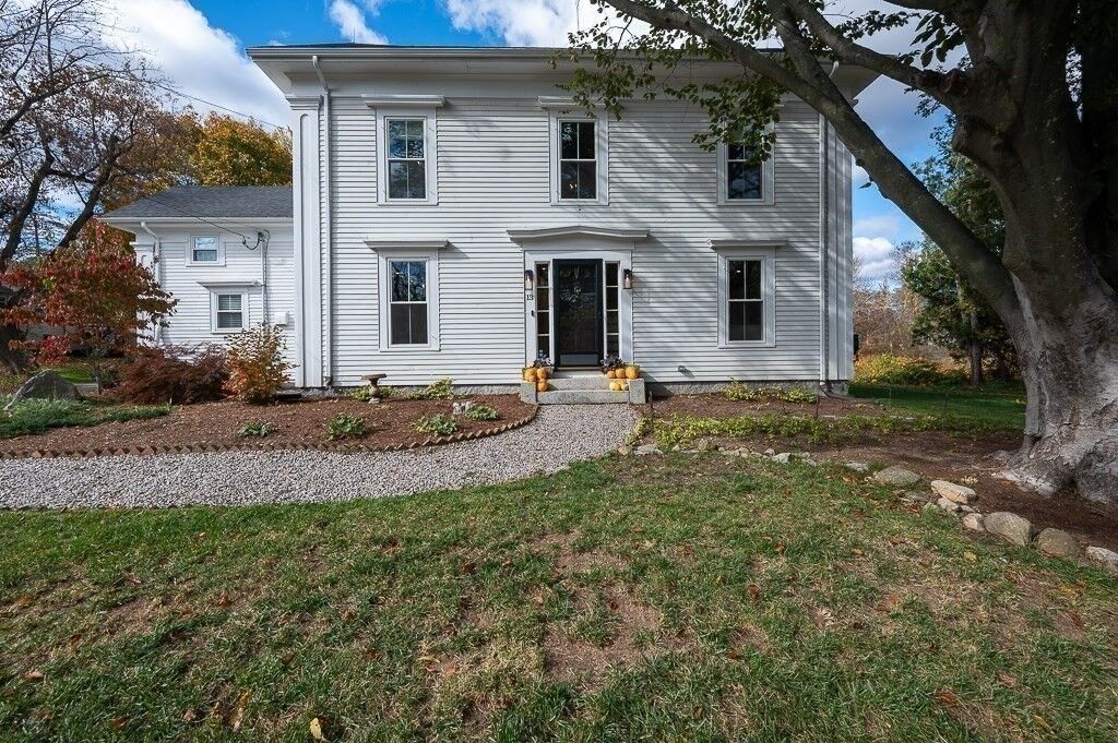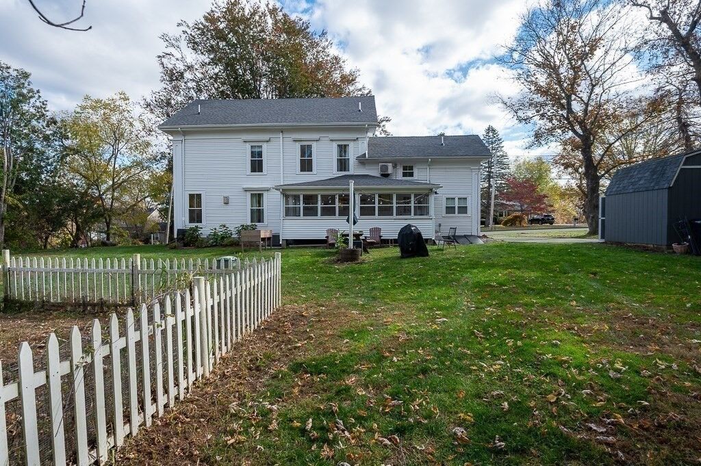 Beautiful and tastefully restored 4-bedroom antique colonial. Historic charm meets modern convenience. The main level features a French country kitchen with a center island, shaker style soft close cabinets, granite counters, huge apron sink, S/S appliances including a gas stove with vent hood & wine fridge - all perfect for entertaining. A light-filled dining room, front-to-back living room with gas f/p,, mudroom with custom built-ins, 1/2 bath with W/D, and a 23’ rear porch complete the 1st level. You'll find 4 generously sized bedrooms and two baths on the second level. The spacious primary bedroom features a modern updated bath and walk-in closet. On the 3rd floor there is a huge 34' bonus room that can serve as an office, workspace, media room, etc. A sweeping main staircase as well as a back staircase adds to the antique flavor. New Roof & Well 2025. Furnace, A/C, Plumbing, Electrical, Septic and Windows replaced in 2019-2020. The backyard is sunny and private.