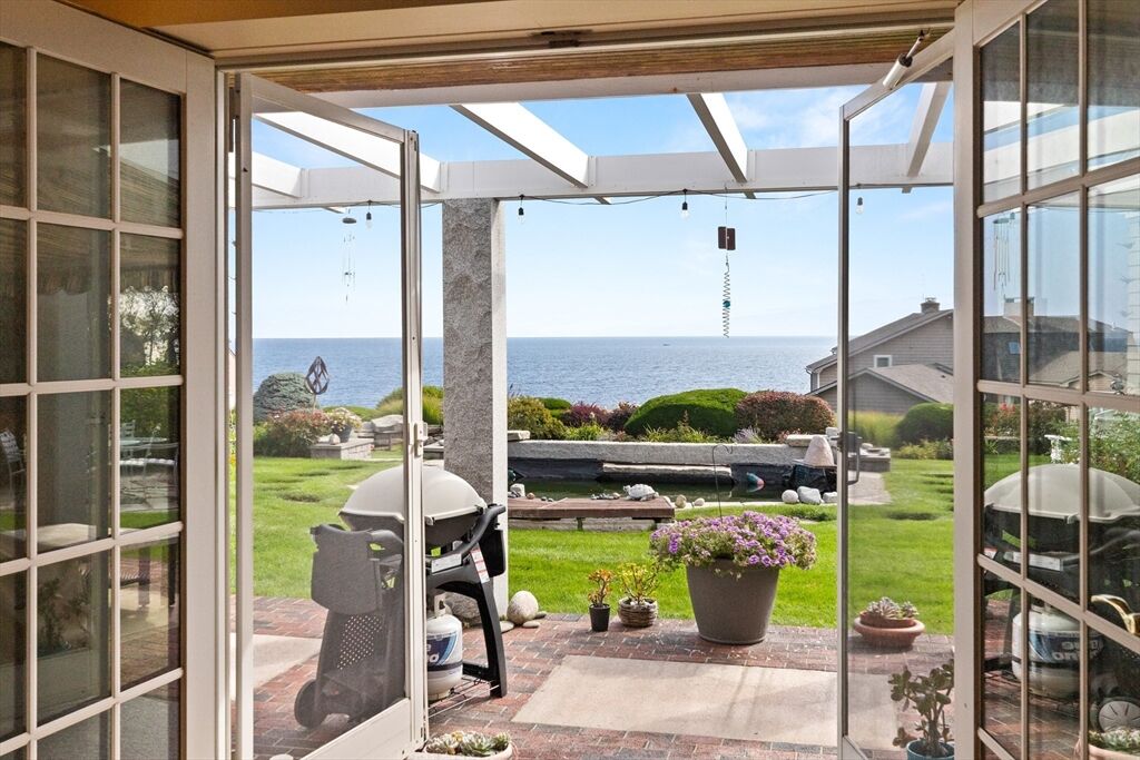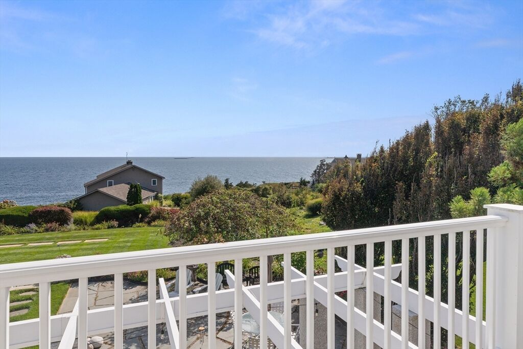 Nestled within a picturesque seaside community, this sizable and sophisticated formal home has elegance and charm. It coasts expansive views of the ocean creating a backdrop that shifts with the rhythms of the tide and the changing colors of the sky. The grand entrance welcomes you into a impressive foyer with soaring ceilings and polished marble floor. The flowing layout includes multiple living spaces each bathed in natural light. The living room accentuated by a fireplace and French doors leading to the patio invites both intimate gatherings and grand entertaining. a well equipped kitchen with a separate spacious pantry, top of the line appliances, custom cabinetry and granite counter tops adjoins a cozy family room that leads to a formal dining room with ocean views. The spacious principal bedroom has a sunroom and well appointed bath. Meticulously cultivated garden with koi ponds , a private path to the ocean edge and a roof top deck. This is a true haven by the sea.