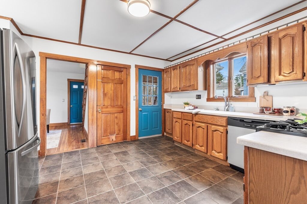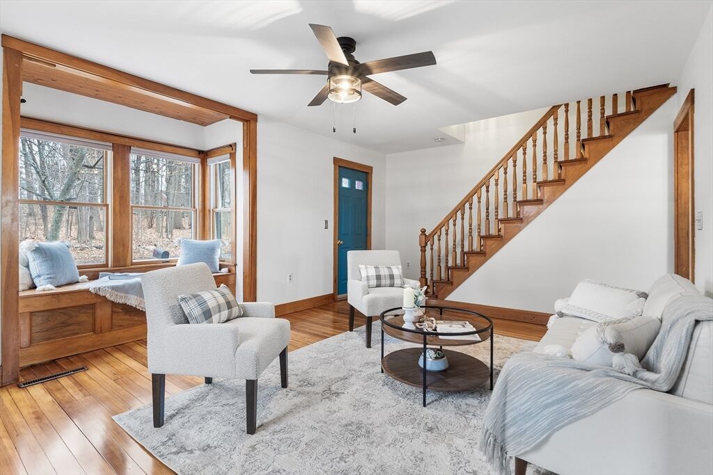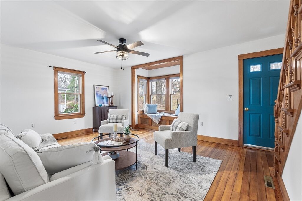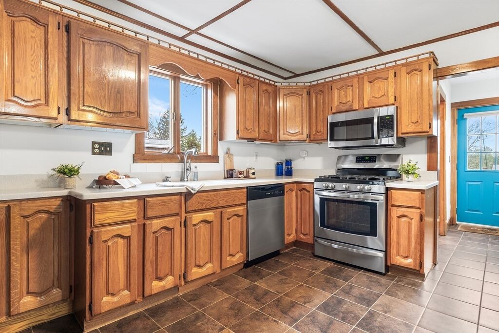 Discover a beautifully refreshed, move-in-ready gem with gleaming hardwood floors, fresh paint, and abundant light. The spacious kitchen features stainless steel appliances, ample cabinets, and large counters, ideal for cooking and entertaining. Recent updates include a new gas furnace (2024), water heater (2023), roof (2021), repaved driveway (2022), all new electrical (2019), vinyl siding, and premium Andersen & Harvey windows. Both bathrooms have modern vanities; the upstairs has a custom tiled shower with frameless glass door. Each floor has a full, updated bath, newer in-unit laundry, fixtures, and Norman blinds. The bright sunroom has new flooring and a storage window seat. Under-floor heating is in the kitchen and upstairs bath. An expansive raised deck overlooks a fenced yard with a shed. Off-street parking, certified de-leaded. Access to Marlborough Hospital, Assabet River Trail, schools, shops, and dining. Meticulously maintained, this pristine turnkey home is ready now!
