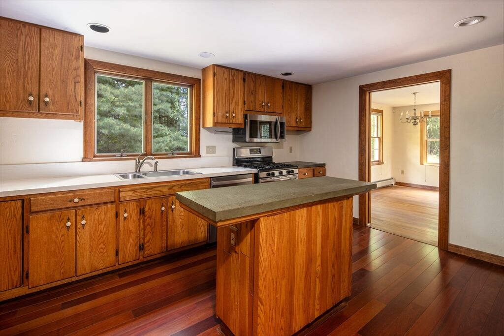Located within the desirable Dexter Beach Association, this home was built in 1989 following a Royal Barry Wills plan and offers its next owner a near ¾ acre wooded lot with mature plantings, large family room with wood burning fireplace, dedicated dining room, custom-built kitchen, 3 comfortable bedrooms and 2 full baths. (Note: the combination of converting the dining room and a 1st floor full bath means this home can easily be utilized for 1st floor sleeping needs.) Craftsmanship can be found throughout this home with details like attractive millwork, built-in cabinets, and beautiful mahogany floors. The garage, full basement, and spacious yard offer plenty of space for hobbies and storage. And best of all, Dexter Beach Association residents enjoy exclusive access to a pristine sandy beach and a convenient association dock along the tranquil Weweantic River. You’ll find this home can be easily contemporized and presents an opportunity for its next owner to create significant value.