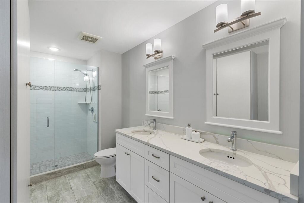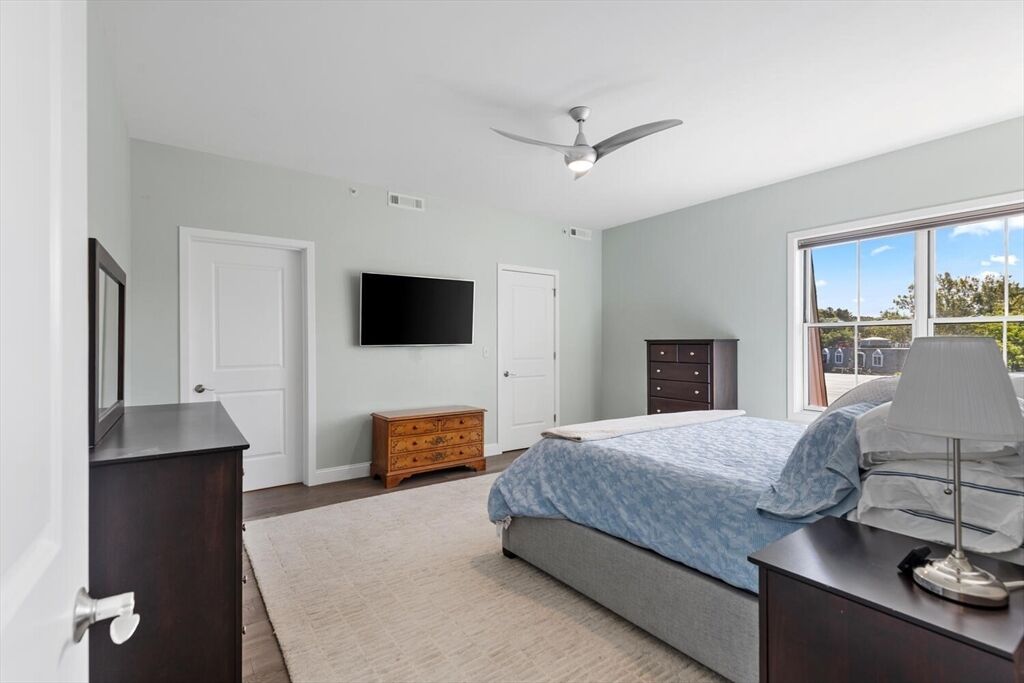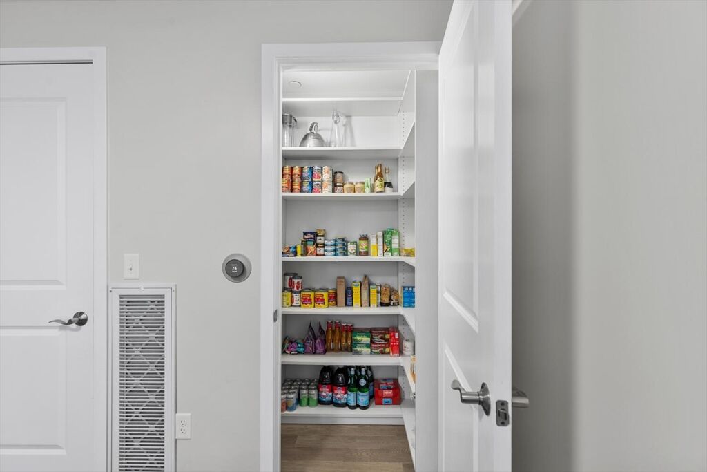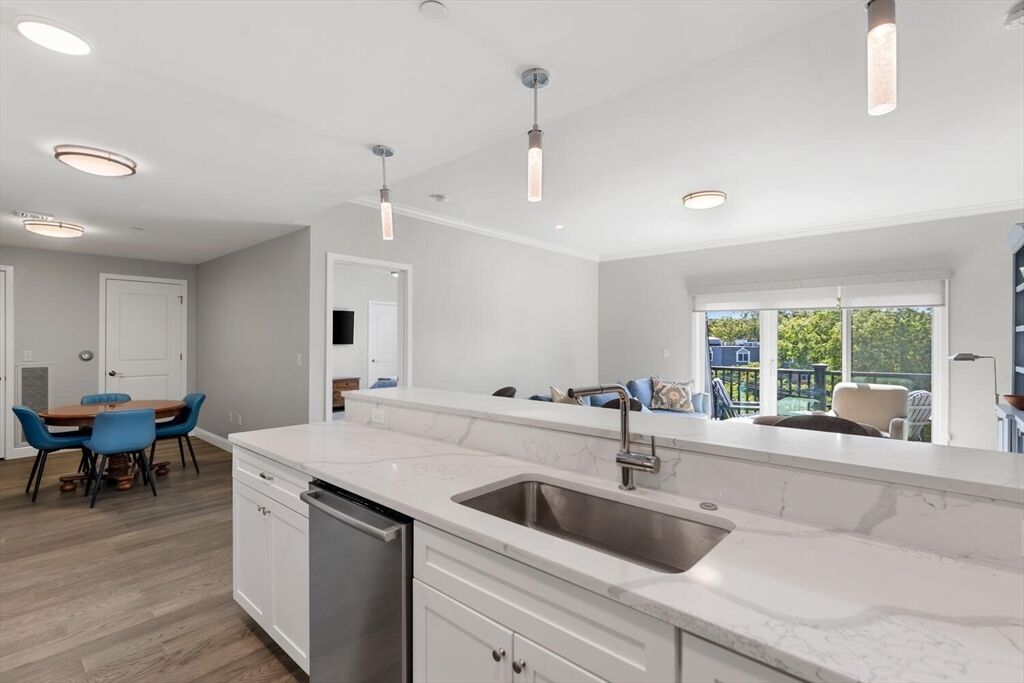 Hendries at Central Station is a newly built 38-unit condo in Milton’s historic Lower Mills. This top-floor center unit overlooks the courtyard and offers 1,355 sq. ft. of living space with 9-ft ceilings, 2 bedrooms, and 2 full baths. The kitchen features Bosch stainless steel appliances and quartz countertops. Enjoy a dining area with custom built-ins and a wine cooler, plus a spacious living room with custom cabinetry opening to a balcony. The primary suite includes a walk-in closet with custom shelving and a glass enclosed shower. The second bedroom has ample closet space. Includes stackable washer/dryer, 2 deeded parking spots, and 2 storage lockers. Steps from the Neponset River bike trail that offers miles of trails and close to public transit with easy access to Boston. Nearby dining includes Steele & Rye, The Bowery, and Lower Mills Tavern.